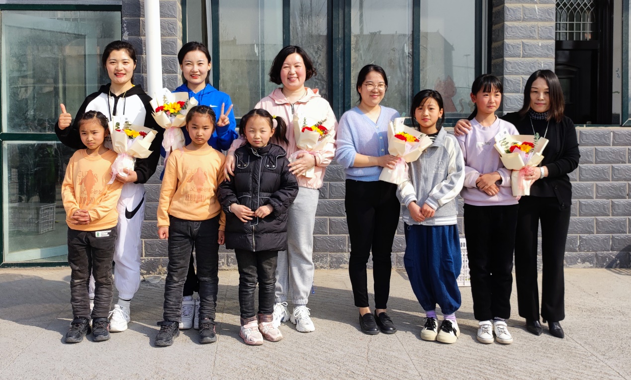 对于附小送教团队的到来,河南大学驻村工作队队长车颍涛、队员李志强、李佩琛,双楼村党支部书记王庆利、小学校长王炎峰都表示热烈欢迎和衷心感谢。此次活动值“三八妇女节”来临之际,为感谢附小送教团队不辞辛苦和路途劳累来给孩子们上课,在告别环节,双楼小学全体学生集体行少先队礼,并为此次前来送教的女老师们送上美丽的鲜花和美好的祝福。附小送教团队表示,双楼小学的孩子们可亲可爱,附小将继续与双楼小学牵手连心,将爱心传递、将知识传递、将帮扶情谊传递!