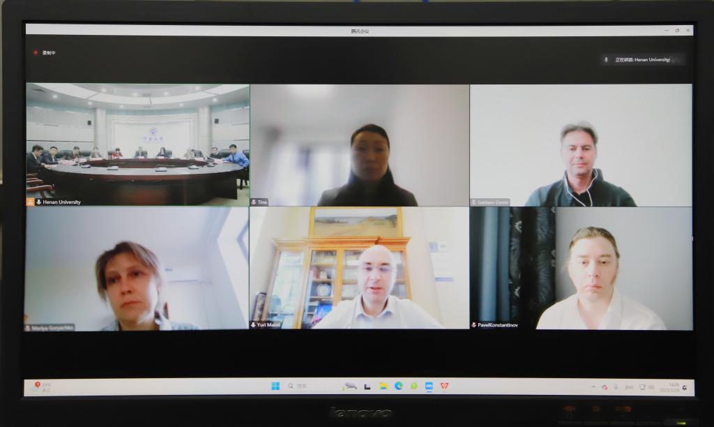 3月29日下午,河南大学与俄罗斯莫斯科国立大学视频会议在金明校区行政楼152会议室召开。俄罗斯莫斯科国立大学国际事务副校长马泽毅及生物系、地理系相关专家,俄中教育科技发展基金会会长崔姗及相关负责人,我校副校长傅声雷,国际合作与交流处、地理与环境学院、生命科学学院、欧亚国际学院相关负责人、专家参加会议。会议由国际合作与交流处处长毛立群主持。