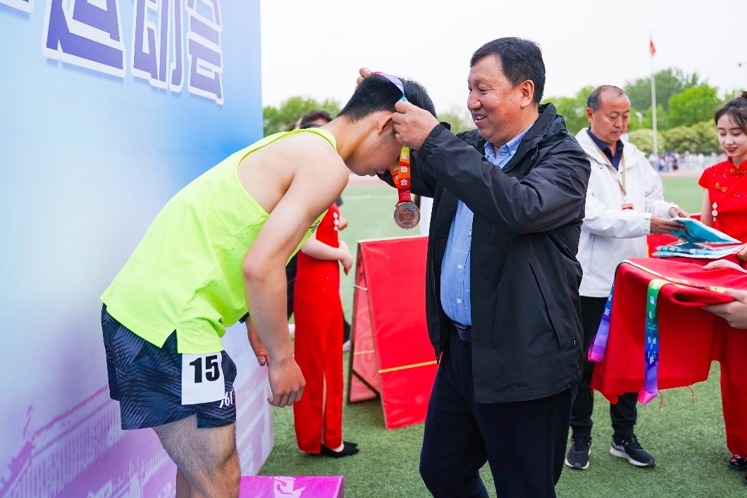 为激发运动员奋斗意志,培养坚毅合作的精神面貌,苗雨晨给赛场运动员们加油助威,给工作人员指导慰问,并为田径男子甲组3000米、田径女子甲组跳高项目的获奖运动员进行颁奖。
