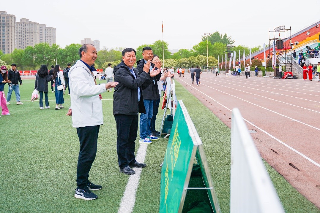4月13日下午,河南大学春季运动会各项赛事激战正酣。副校长、校体委主任苗雨晨来到金明校区志义体育场为运动健儿们加油助威,随后为获奖运动员颁奖。
