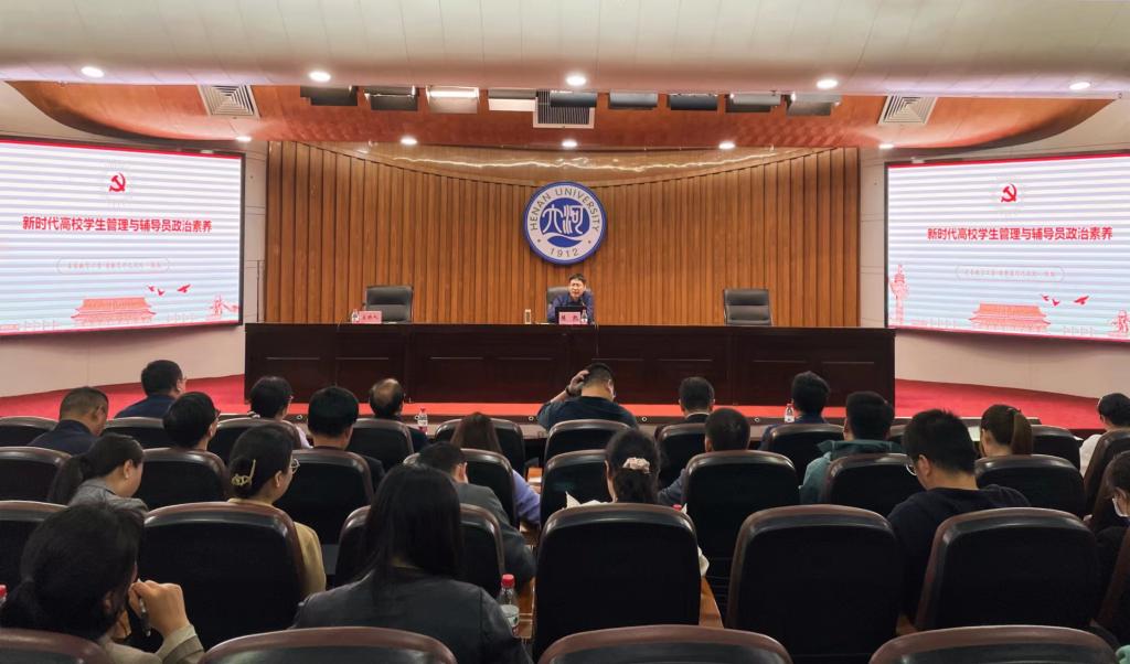4月13日下午,我校学工队伍素质能力提升工程之“明德讲坛”开讲,河南省教育厅思政处处长陈凯以《新时代高校学生管理与辅导员政治素养》为题,作首场辅导报告。各学院(部)党委副书记、全体本科生辅导员和党委学生工作部全体人员共200余人聆听报告。报告会由党委学生工作部部长沙莎主持。