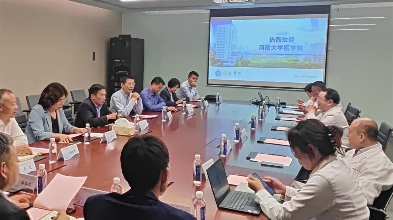 袁正宏对季波一行表示热烈欢迎。并对河大医学要建设研究型医学院、研究型医院的目标定位;以临床为导向、以临床问题为牵引的办院模式;医工交叉、多学科交叉,学术立院、研究强院,建设研教医产一体化的医学院发展思路予以充分肯定。他指出,河南大学医学学科应按此发展思路经过10—15年的努力,走上高速发展的道路;面对医学新的发展趋势和挑战,面对党和人民的巨大期待,支持两校进一步全面开展交流合作,为医学发展和人民健康贡献力量、携手同行。随后,双方代表围绕医院管理、学科建设、人才培养、师资队伍建设、科学研究、医疗服务、学生管理、国家重点实验室建设、临床教学等主题进行了深入探讨。