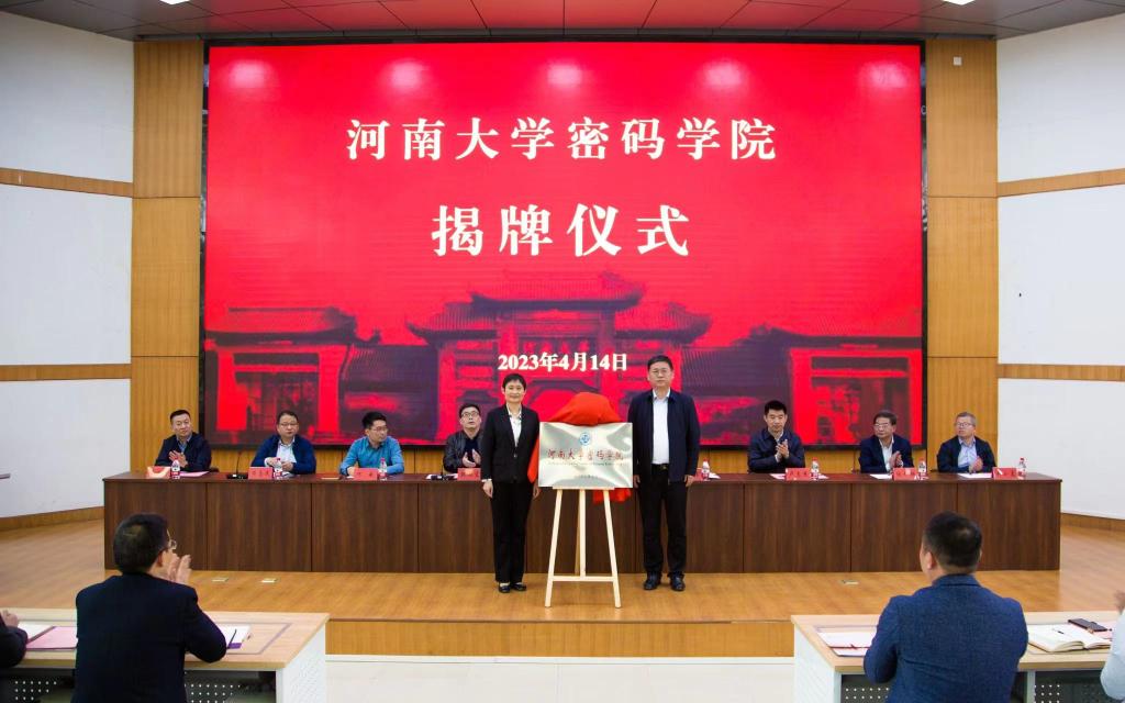 4月14日上午,河南大学密码学院揭牌仪式及“河南省密码管理局—河南大学密码领域合作协议”签约仪式在计算机与信息工程学院(密码学院)201会议室举行。河南大学党委副书记冯淑霞、河南省密码管理局副局长晋拥军、河南省密码管理局商用密码管理处处长卢志杰、河南大学发展规划处副处长何威、计算机与信息工程学院(密码学院)党委书记周志民、数学与统计学院院长韩小森和相关部门领导及部分师生代表出席仪式。仪式由河南大学本科生院党委常务副书记、副院长、教务处处长张向东主持。