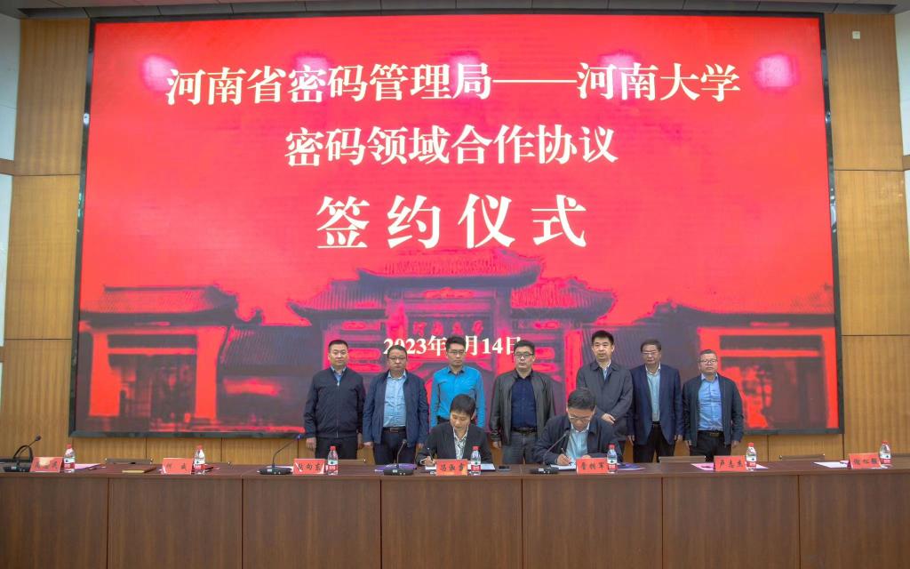 冯淑霞和晋拥军共同为河南大学密码学院揭牌,并分别代表河南大学和河南省密码管理局签订了合作协议。根据协议,双方将按照优势互补、资源共享、互惠互赢、共同发展的原则,瞄准国家重大战略和科技前沿,积极开展基础理论研究、学科建设、人才培养和创新成果转化等方面合作,助力河南建设国家密码创新高地。
