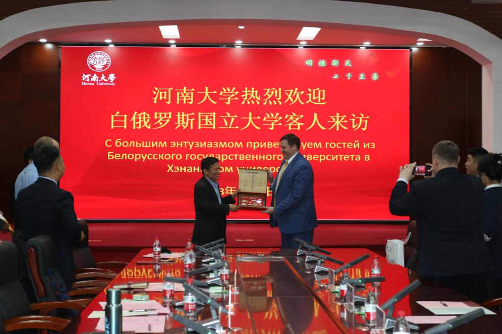 4月19日上午,河南大学与白俄罗斯国立大学合作项目会议在明伦校区小礼堂举行。