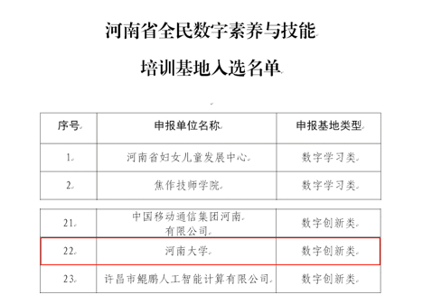 4月27日,2023年全民数字素养与技能提升月河南省活动启动仪式在郑州举行,河南大学被授予河南省全民数字素养与技能培训基地。