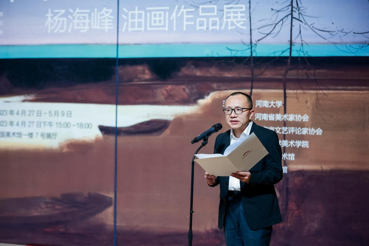 河南省文联副主席、河南省美术家协会主席刘杰代表河南省文联和省美协对展览的开幕表示祝贺。刘杰表示,河南是中华民族和华夏文明的重要发祥地,孕育了内涵丰富、博大精深的中原文化,中原绘画历史悠久。近年来,河南美术不断传承和发展“中原画风”,用美术作品讲述黄河故事、河南故事。艺术家杨海峰是河南青年油画家优秀代表,也是中原画风的新一代承继者、构建者。希望通过本次展览,让全国人民了解河南艺术家杨海峰的作品面貌,感知厚重文化中原,触摸华夏文明根脉,欣赏“中原画风”的艺术魅力。