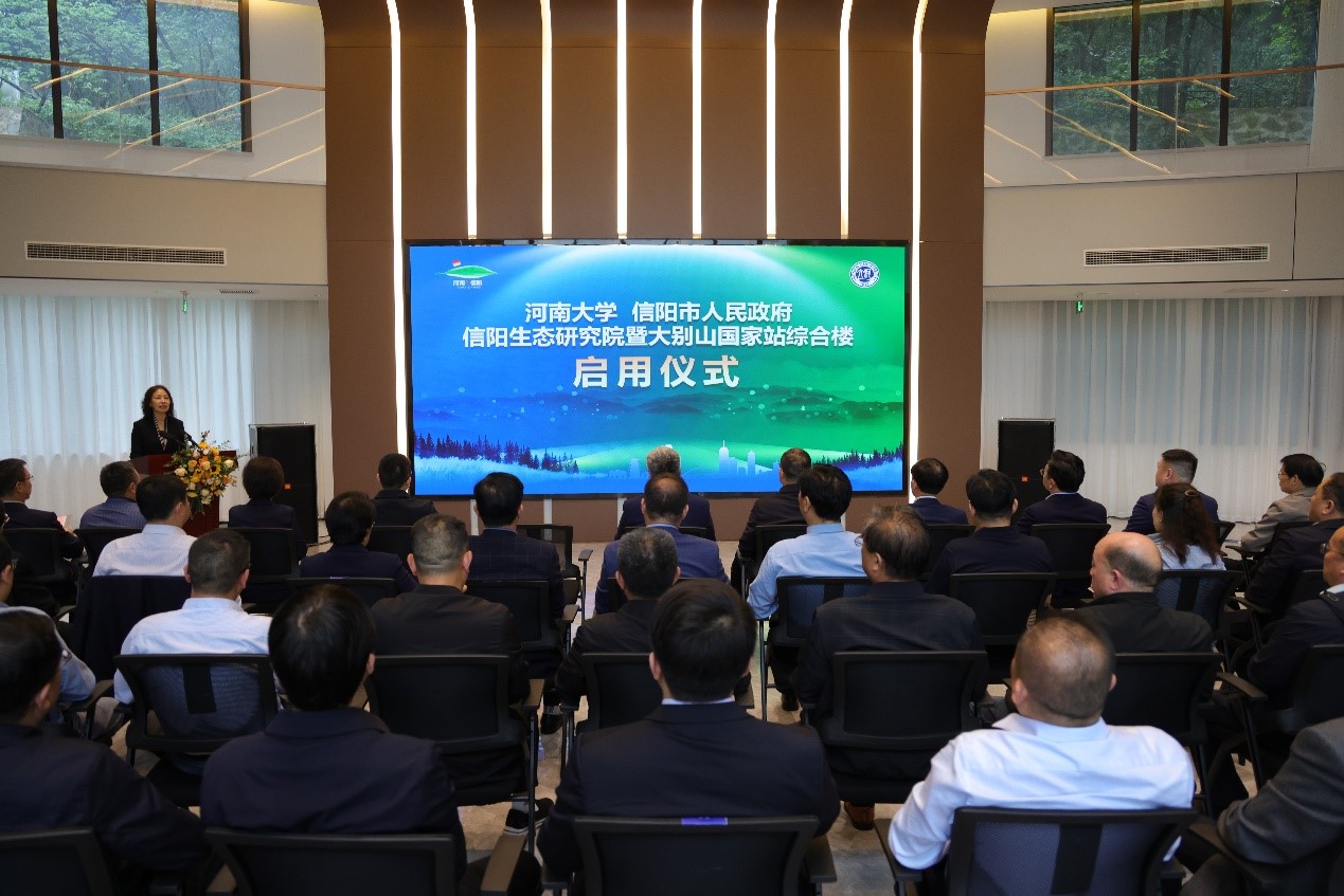 李俊在致辞中表示,信阳生态研究院暨大别山国家站综合楼的正式启用,标志着信阳市校地合作迈向更宽领域、更深层次、更高水平,对于促进信阳市科技成果转移转化、筑牢大别山生态安全屏障、推动建设人与自然和谐共生的现代化信阳具有重要的意义,也将有力支撑河南大学“双一流”建设和生态学、环境科学和地理学等学科发展。下一步,双方将进一步建立健全沟通合作机制,全力打造支撑我国生态学和环境科学创新发展的学术高地、科技成果的示范基地、科学普及与实践教育基地。希望河南大学和驻信高校充分发挥学科、科研创新平台、示范引领等综合优势,探索符合大别山革命老区绿色发展的创新路径,全方位推进信阳市生态经济高效发展。信阳市委市政府将全方位提供一流的服务、一流的环境、一流的保障,把更多科技成果变为项目清单,携手开创互利共赢创新发展新局面。