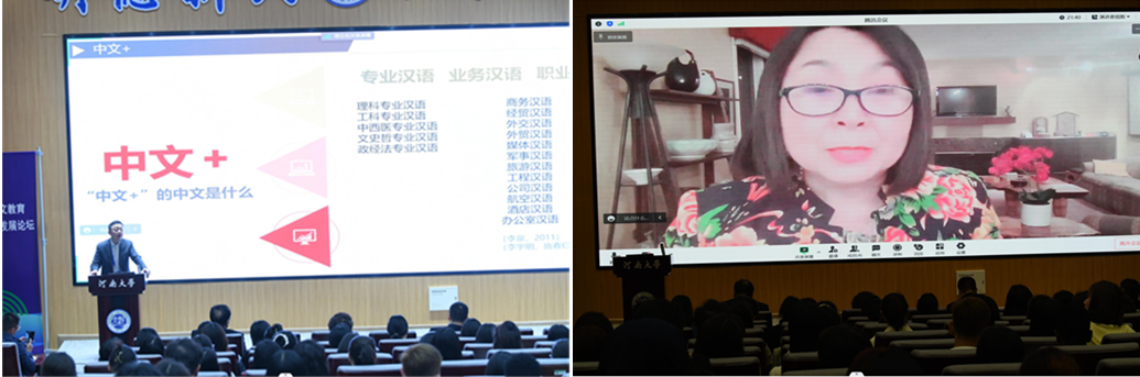 钟英华教授线上致辞,他对论坛承办方河南大学在国际中文教育方面的多个优势学科支撑以及多学科交叉发展的良好态势表示赞赏。同时,他还从新形势下中文教育的新变化出发,探讨了国际中文教育在当前背景下的机遇和发展。
