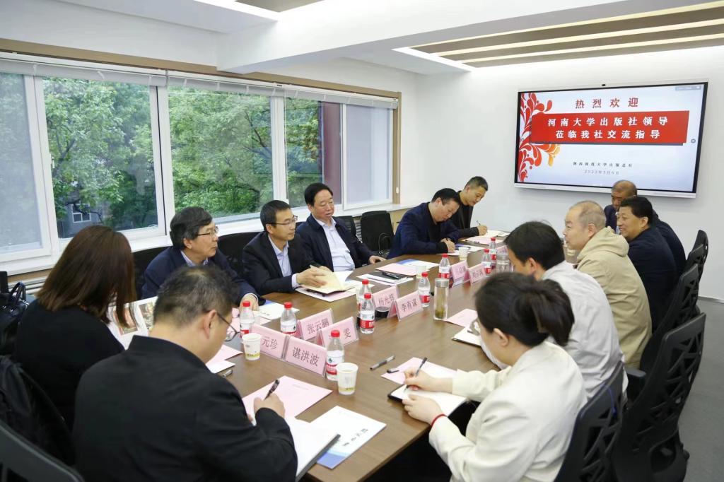 为贯彻落实中共中央办公厅《关于在全党大兴调查研究的工作方案》精神,更好地实现服务党和国家工作大局的新时代出版工作要求,5月5日至6日,河南大学党委常委、副校长许绍康,出版社党总支书记杨光辉、社长谢清溪、总编辑孔令刚等一行七人赴西北大学出版社和陕西师范大学出版社开展调研交流活动,深入学习兄弟高校出版社在运营管理、品牌塑造和营销推广等方面的先进理念和创新举措,以及在开展党建工作方面取得的经验亮点,共同探讨交流在新形势下大学出版社发展的新思路和新模式。