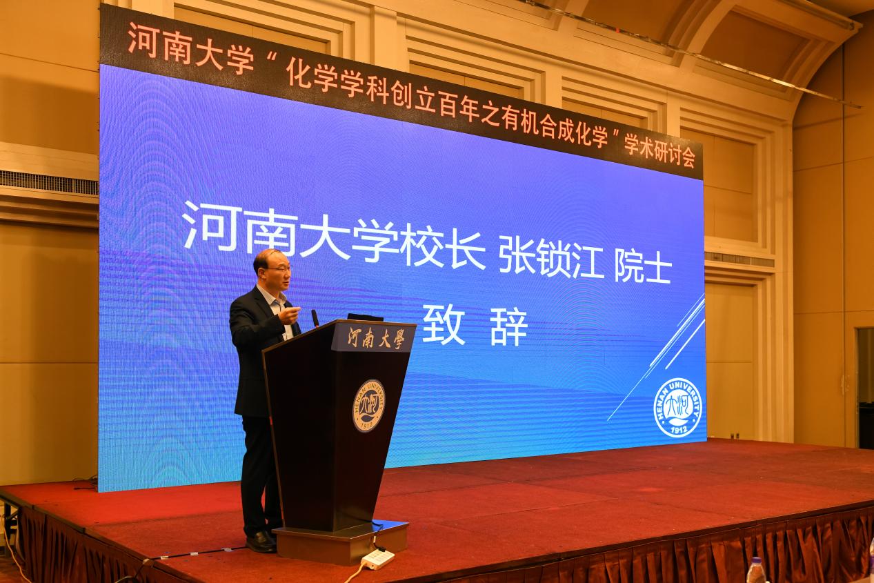 开幕式由副校长王学路教授主持,校长张锁江院士致开幕辞。张锁江对各位专家的到来表示欢迎和感谢,他介绍了河南大学化学学科的百年发展史,及涌现出的像曹理卿、马可、李俊甫、李丙寅、张举贤、党鸿辛、张治军等一大批优秀的科学家和爱国人士。结合我校研究型综合性国际化一流大学的定位,他对我校化学学科的发展前景及高层次人才培养提出了殷切期盼。