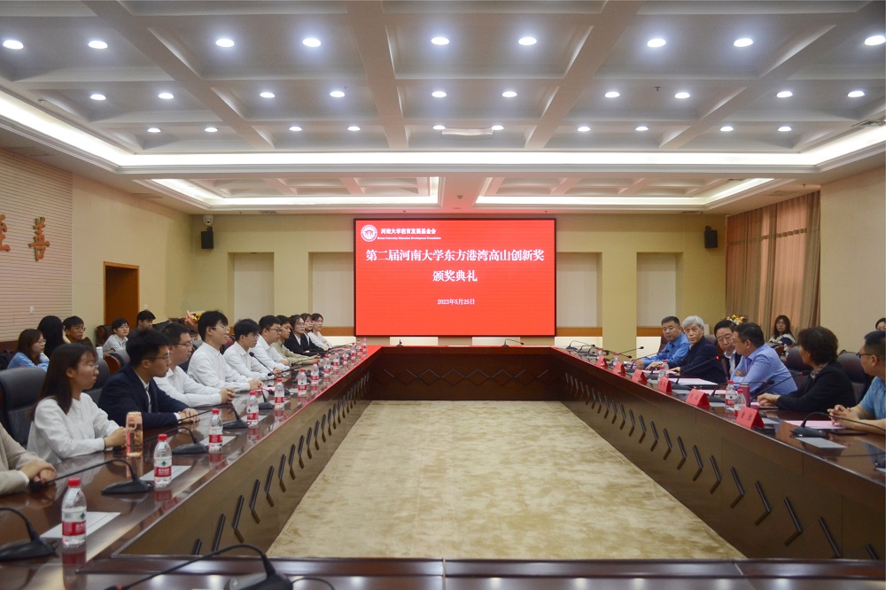 唐胜介绍了河南大学东方港湾高山创新奖的设立和评奖情况。2020年,但斌校友向我校捐赠1699万元人民币,并以学校、公司和自己恩师的名字命名设立“河南大学东方港湾高山创新奖基金”,用于在校本科生学术科研奖励。河南大学东方港湾高山创新奖评委会坚持“公平、公正、公开”的原则,严格按照河南大学奖助学金评审程序评选,组织专家对材料进行审核,确定入选奖励成果名单,并在全校范围内公示后予以表彰。第二届“河南大学东方港湾高山创新奖”共评选出获奖论文11篇,其中一等奖1篇,二等奖10篇,共有12名学生获奖。