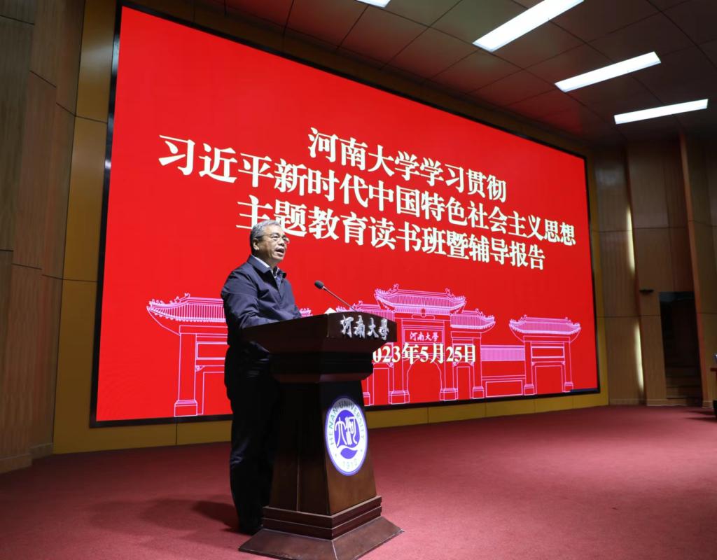 在主题教育读书班集中研讨时,围绕“学习贯彻习近平新时代中国特色社会主义思想,加快推进学校治理体系和治理能力现代化建设”主题,校党委常委、副校长孙君健,校党委常委、校纪委书记、省监察委驻河南大学监察专员杨朝阳作了重点发言。孙君健表示,要以“六个坚持”为遵循,处理好学术研究与现实关怀、国家需求与个人兴趣、一线教学与学术研究、自身学科与交叉融合、固本培元与创新发展的关系,全方位推动学校哲学社会科学研究的高质量发展。杨朝阳表示,加强政治监督是推进全面从严治党向纵深发展的重要路径和根本遵循。要以强有力的政治监督营造风清气正、干事创业的良好环境,推动学校高质量内涵式发展。中层干部陈河山、潘少奇、杨江涛、吴建伟、蔡军、谢纳泽等作了代表发言,畅谈学习经验,交流心得体会,凝聚发展共识。