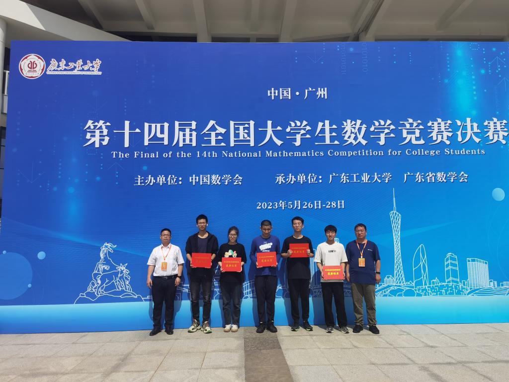 5月27日,第十四届全国大学生数学竞赛决赛在广东工业大学举行,由数学与统计学院尹彦彬、楚彦军两位老师带队,我校5名优秀学生代表河南赛区参加此次决赛,并取得优异成绩!