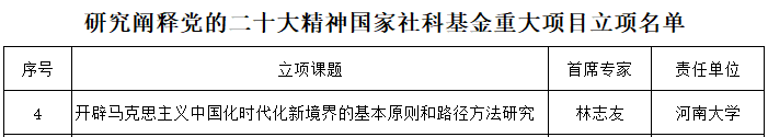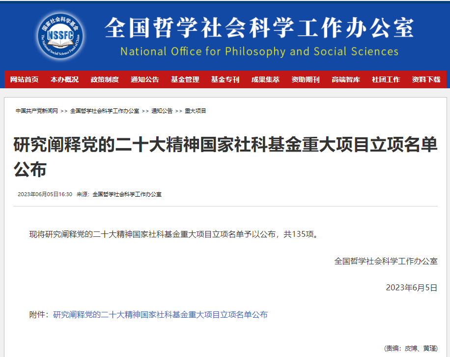 6月5日,全国哲学社会科学工作办公室公布了研究阐释党的二十大精神国家社科基金重大项目立项名单,我校马克思主义学院林志友教授申报的“开辟马克思主义中国化时代化新境界的基本原则和路径方法研究”获批立项。本次重大项目共立项135项,“开辟马克思主义中国化时代化新境界的基本原则和路径方法研究”的获批充分展示了我校在哲学社会科学领域重大问题方面的研究实力和水平,对于拓宽我校马克思主义中国化时代化研究领域,提升马克思主义学科建设水平具有重要意义。