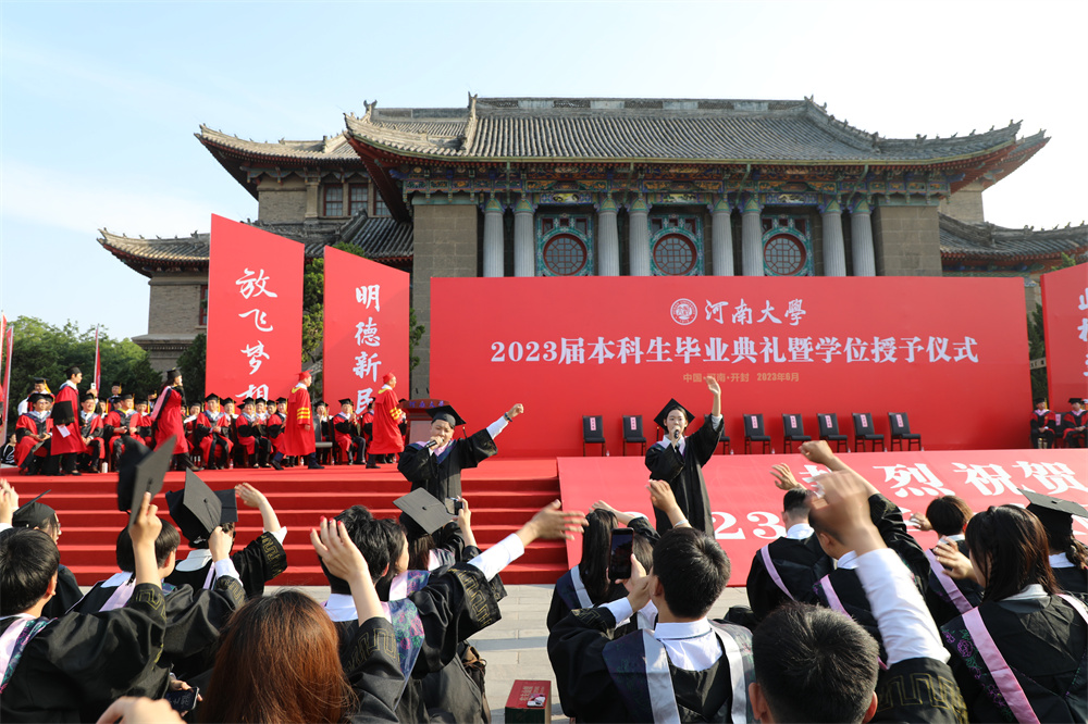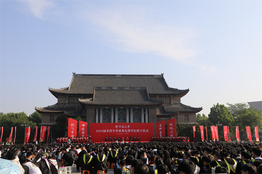 “嵩岳苍苍,河水泱泱,中原文化悠且长……”在校歌的悠扬旋律中,河南大学2023届本科生毕业典礼暨学位授予仪式圆满结束,毕业学子们对母校的万千情感又一次在心中激荡。典礼结束,旭日渐升,热烈的阳光洒满古朴庄重的大礼堂,也照向青年学子们更加广阔的人生未来路。