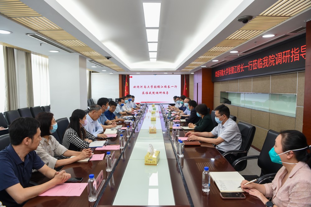 张锁江指出,河南大学作为“双一流”建设高校,根植中原沃土,在河南省“双航母”的战略部署下,基于亿万中原百姓对优质教学资源的需求和对优质医疗健康卫生服务的需求,勇于担当,强化使命,必须建设一流的医学院和一流的附属医院。他强调,双方要进一步解放思想,转变观念,扩大开放。要以河南大学医学博士点申报为抓手,深化合作交流,强化科研、教学、人才培养和成果转化等方面的共享;要加强学术交流,创建国际国内学术交流品牌,塑造良好形象,提升双方软实力,推动医学教育创新发展;要进一步改革创新,加强学生管理,将医教研协同发展作为基本定位,构建推动医学教育高质量发展的体制机制,充分发挥“1+1>2”的协同效应、叠加效应。百年河大和百年省医将面向世界前沿,同向努力、合力共进,重点围绕“怎么干”,在更高层次、更广领域深度融合,平稳实现共赢发展,共同谱写医院和学校高质量发展新篇章。