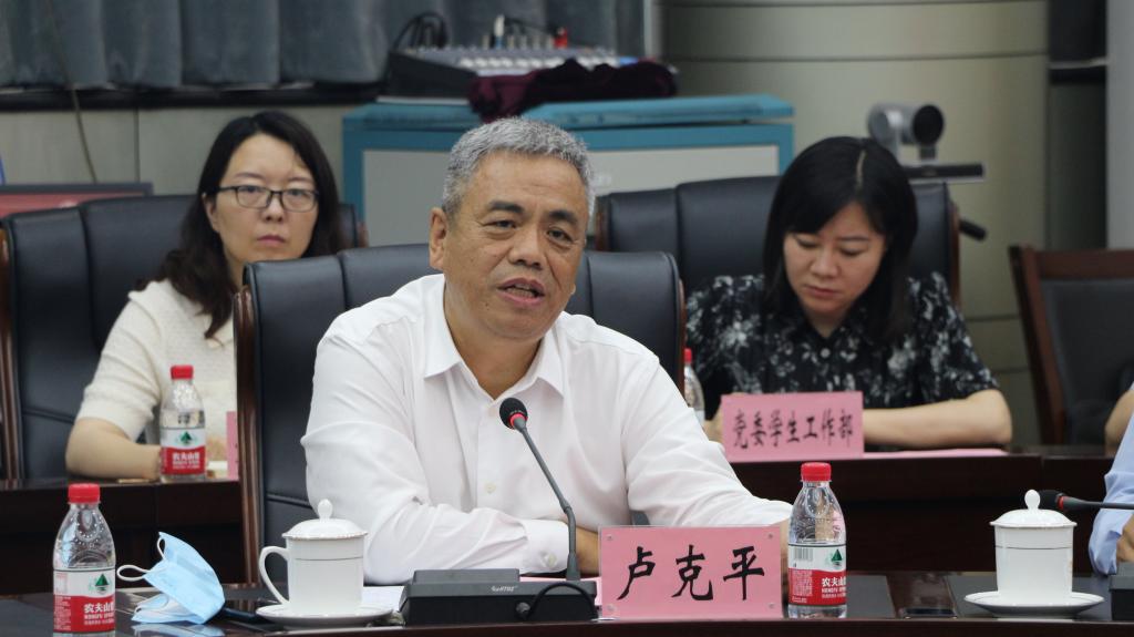 卢克平首先介绍了学校思政工作建设的整体情况。他指出,学校党委深入贯彻落实习近平新时代中国特色社会主义思想,学习贯彻全国全省高校思想政治工作会议精神,认真落实省委书记楼阳生同志到校调研讲话精神,落实立德树人根本任务,着力打造以思想为引领、以问题为导向,点面结合、坚强有力的思政教育工作体系。一是加强理论学习,推动习近平新时代中国特色社会主义思想入脑入心;二是强化思想引领,着力构建“大思政”工作体系;三是强化问题导向,认真落实意识形态工作责任制;四是加强马院建设,提升思政课程育人水平;五是深耕课程思政,发挥专业课程育人作用;六是突出文化涵养,凝聚立德树人正能量。他强调,学校思想政治工作虽然取得一些成绩,但是仍然面临许多新情况新任务新课题,要优化顶层设计,加强思政工作守正创新;要强化学科引领,加强思政课程传承创新;要强化靶向发力,加强课程思政改革创新,不折不扣地全面落实中央和省委的有关部署,推动学校思政工作高质量发展,助推学校“双一流”建设事业行稳致远。