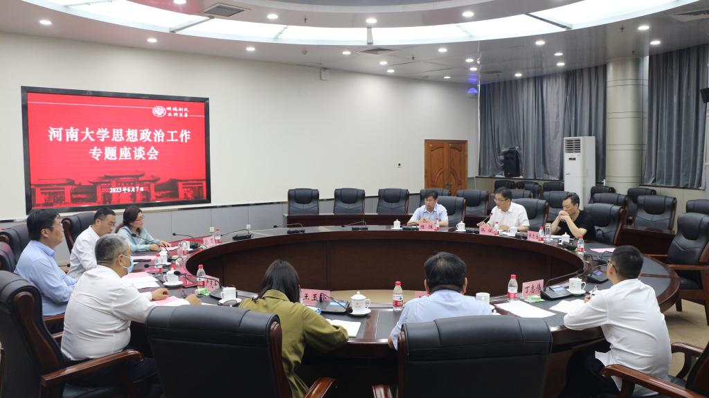 韩斌充分肯定了我校思想政治工作建设的特色和成绩,他指出,河南大学的思政工作讲理想情怀、讲政治站位、讲理性深度、讲自我革命,是具体实在、专业到位的工作实践。他强调,做好下一步的工作,一是要坚持高标准落实习近平总书记有关高校思想政治工作的重要论述,认真落实好立德树人根本任务;二是要认真落实省委书记楼阳生同志到校调研讲话精神,把握“双一流”“双航母”建设叠加机遇,把主题教育转化为助力学校发展的内驱力,产出更大的实际效果;三是坚持以主题教育推动学校的高质量发展,坚持问题导向和结果导向,不断推动主题教育工作走深入实。