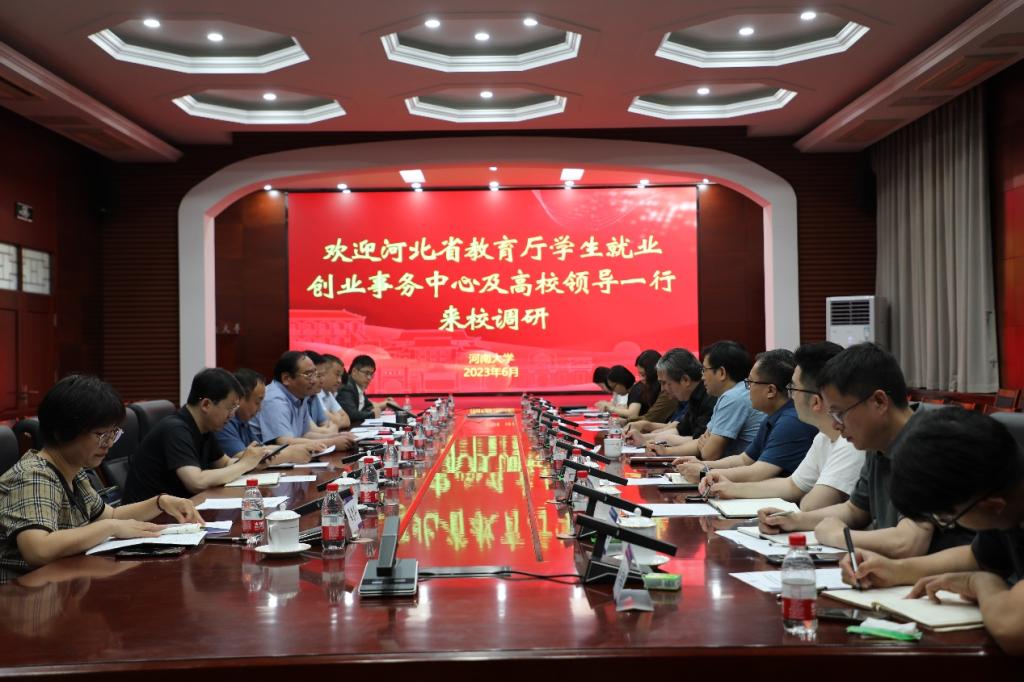 6月8日上午,河北省教育厅学生就业创业事务中心主任王士平、学生工作处副处长周锋带队河北大学、河北工程大学、河北农业大学、燕山大学等高校就业创业部门负责人到我校调研就业创业和职业生涯咨询特色工作室建设等工作。我校党委常委、副校长孙君健,河南省大中专学生就业服务中心常务副主任凡富堂,我校就业创业指导中心相关人员和学院就业创业指导咨询室教师代表参会。