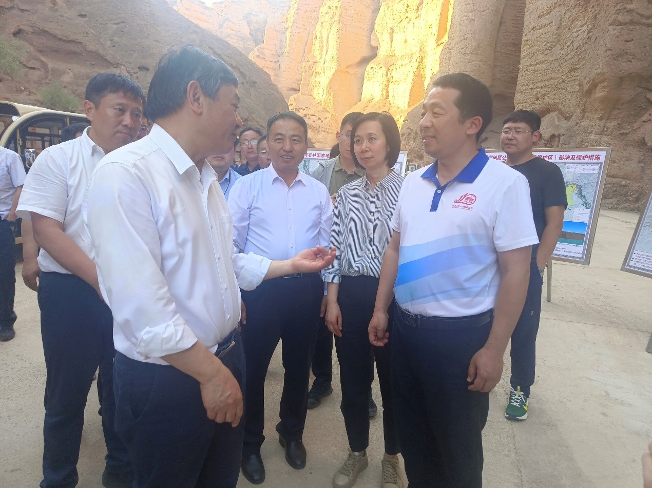 6月9日,生态环境部部长黄润秋来到黑山峡水利枢纽工程坝址及上游景泰黄河石林,考察调研黑山峡工程及工程对景泰黄河石林生态环境影响和保护情况。生态环境部办公厅主任田为勇、环境影响评价与排放管理司司长刘志全、黄河流域生态环境监督管理局局长范治晖、评估中心主任谭民强、水利部总工仲志余、黄河水利委员会主任祖雷鸣、副主任李群、水利部规划计划司司长张详伟,以及相关司、局处室负责同志、甘肃省、白银市相关部门负责同志陪同调研考察,河南大学河南省时空大数据产业技术研究院执行院长秦奋教授、时空大数据技术创新中心副主任王海鹰副教授参加现场调研。