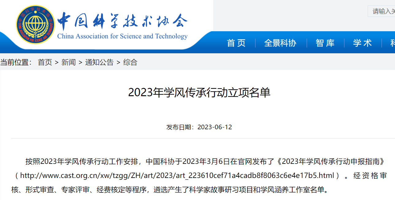 据了解,中国科协已连续四年实施学风传承行动,2023年学风传承行动突出尊重基层的首创精神和学以致用的实践精神,资助开展科学家故事研习项目,建立完善“学风涵养工作室”动态管理机制。科学家故事研习项目要求探索结合自身优势及特色开展科学家故事研究挖掘工作。学风涵养工作室是弘扬科学家精神、涵养优良学风的生动载体,也是创新人才培养形式的新举措。