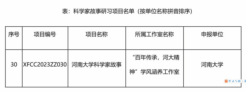 我校获批项目由科学技术研究院和党委宣传部联合申报,项目将按照《2023年度学风传承行动项目申报指南》所列标准和要求,精心组织实施,大力弘扬科学家精神。科学家故事研习项目将遴选具有代表性的优秀科技工作者/团队,挖掘整理他们的真实工作和科研经历,撰写形成系列科学家故事,生动展现我校科学家精神及良好学风作风;拍摄河南大学科学家故事短视频,介绍其科研项目的科学意义,科学家的工作精神、爱国情操和主要事迹。学风涵养工作室将聚焦弘扬科学家精神、涵养优良学风,支持青年开展各种研究创作传播活动,让青年人真正成为学习主体、传播主体、实践主体,推动形成良好学风建设生态。