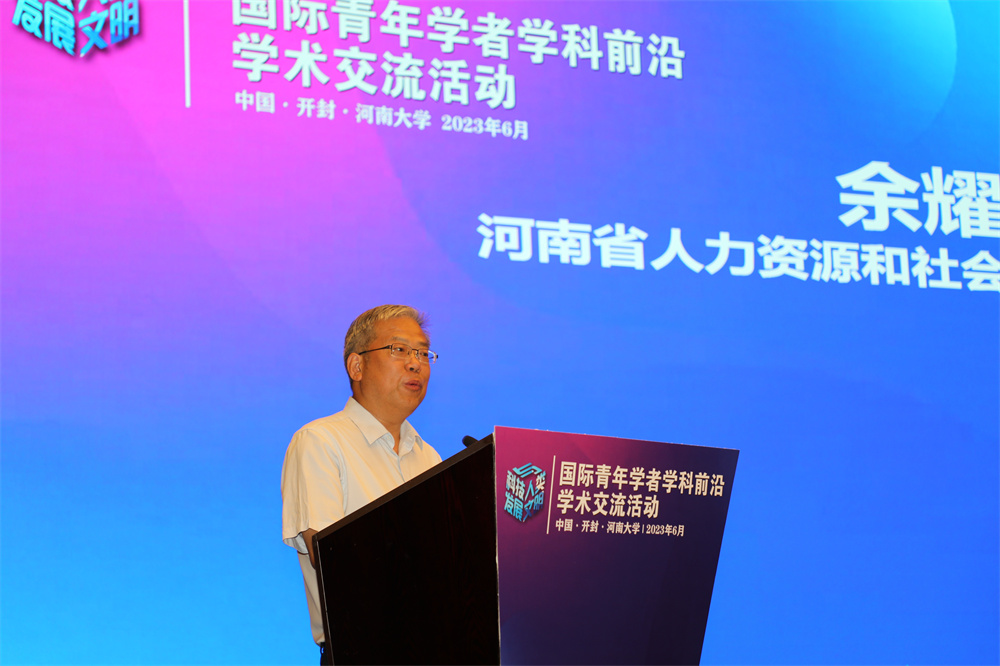 6月16 -17日,由全国博士后管委会办公室、留学人员和专家服务中心(中国博士后科学基金会)、河南省人力资源和社会保障厅主办,河南大学承办的国际青年学者学科前沿学术交流活动在河南开封举行。6月16日上午,活动开幕式举行,来自人力资源和社会保障部、河南省教育厅、河南省人力资源和社会保障厅的领导,国内外高校、科研机构的历届博士后国际交流计划入选者、博士后国际交流计划拟申报者、青年博士后、青年博士、博士后合作导师、相关学科专家、博士后工作管理人员代表,河南大学领导、相关职能部门和学院负责人共200余人参加开幕式。