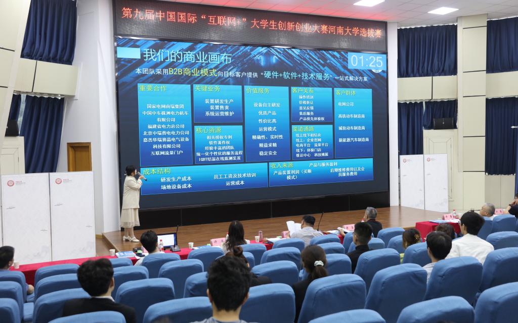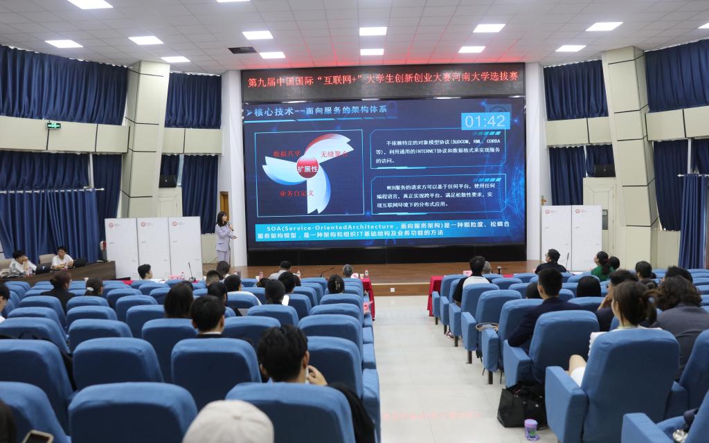 为贯彻落实党的二十大精神,深入贯彻落实习近平总书记给中国“互联网+”大学生创新创业大赛“青年红色筑梦之旅”大学生重要回信精神,“三位一体”统筹推进教育、科技、人才工作,把创新教育贯穿教育活动全过程,全面建设社会主义现代化国家提供基础性、战略性支撑,第九届中国国际“互联网+”大学生创新创业大赛河南大学选拔赛于6月18日在金明校区锥形报告厅举行。