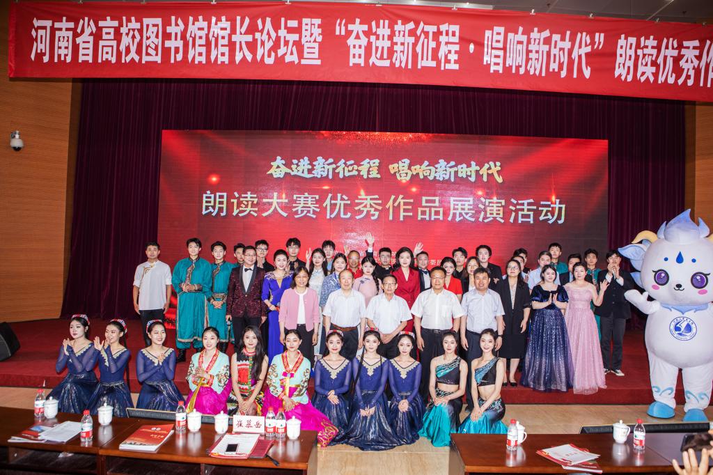 为了响应党的二十大报告中提出的“深化全民阅读活动”的号召,积极贯彻执行河南省教育厅的部署和要求,6月14至16日,由河南省高校图书情报工作委员会主办、河南大学图书馆承办的“2023年河南省高校图书馆馆长论坛暨‘奋进新征程·唱响新时代’朗读优秀作品展演”在河南大学举行。河南省教育厅一级巡视员朱俊峰、中共河南省委党史和地方史志研究室副主任高东海、河南省文化和旅游厅公共文化专家委员会副主任康洁、省高等学校图书情报工作委员会主任崔慕岳,河南大学党委副书记、副校长谭贞,副校长张立新等领导出席会议并致辞。全省100多位图书馆馆长和专家参加了会议,图书馆党委书记马晓静、馆长李恒分别主持展演和馆长会仪式。