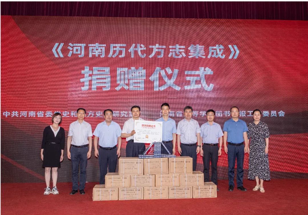 随后,河南大学、河南师范大学、河南科技大学、河南理工大学郑州航空工业管理学院、郑州商学院、河南经贸职业学院等七所高校代表受赠图书馆接受了捐赠,河南大学图书馆代表受赠高校向省委党史和地方史志研究室颁发捐赠证书。