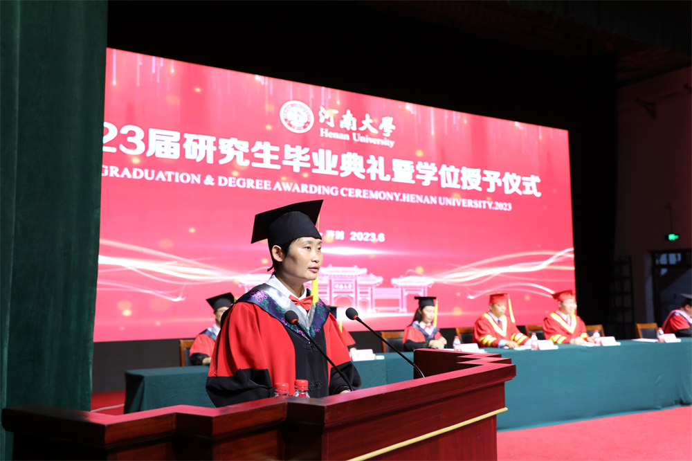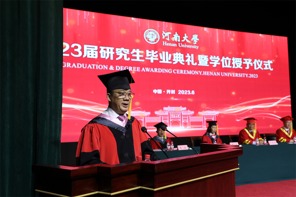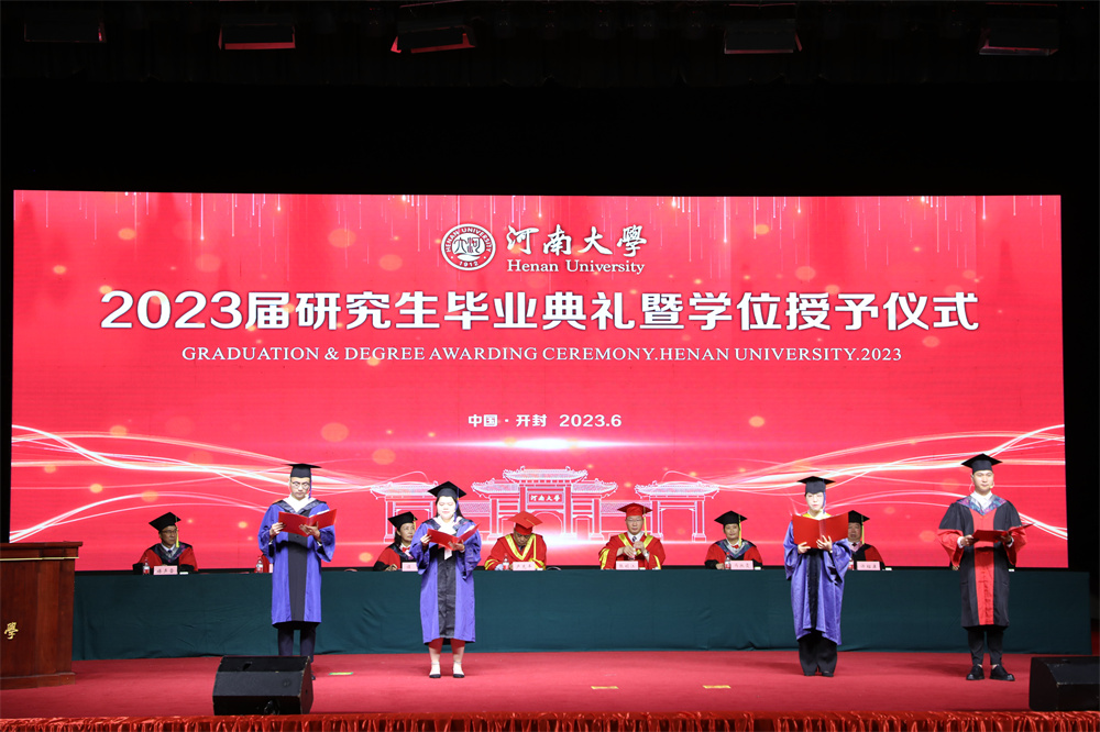 在悠扬的《河南大学校歌》旋律声中,河南大学2023届研究生毕业典礼暨学位授予仪式落下帷幕。