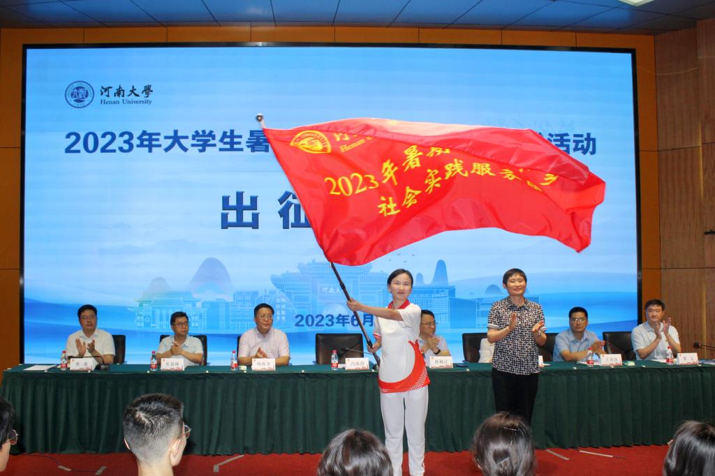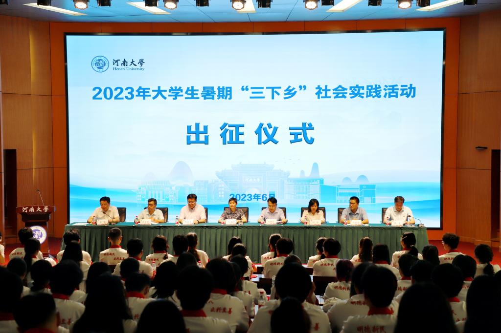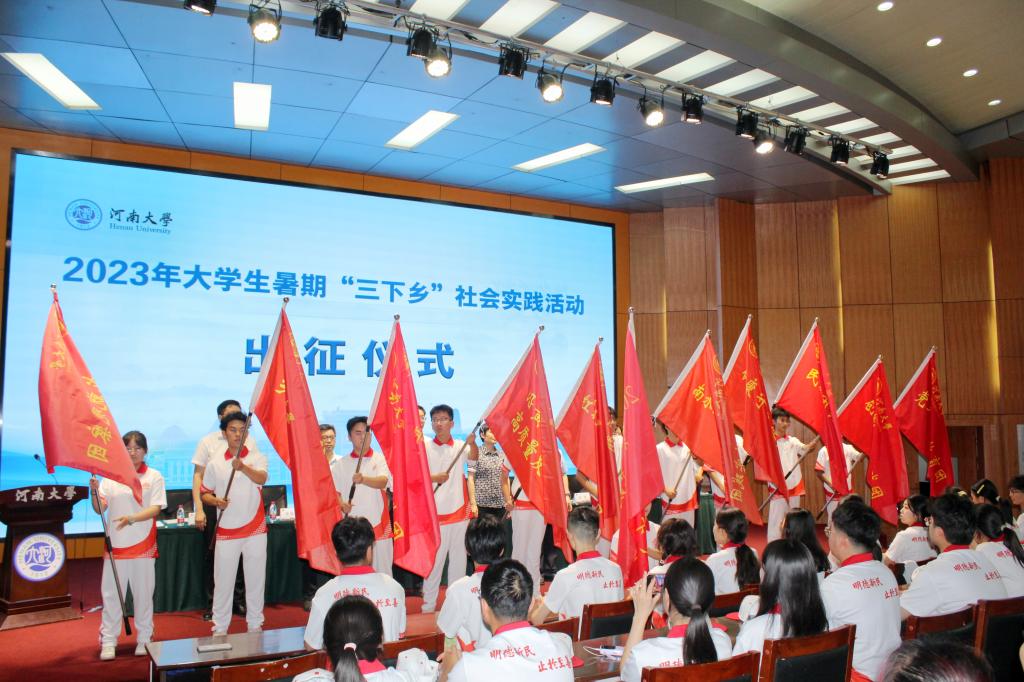6月29日下午,我校在金明校区计算机学院二楼报告厅举行2023年大学生暑期“三下乡”社会实践活动出征仪式。校党委副书记冯淑霞,校党委宣传部、统战部、学工部(学生处),教务处,研究生院等相关职能部门负责人出席会议,校团委全体成员、各单位团委(团总支)负责人以及校级重点团队成员代表近300人参加活动。