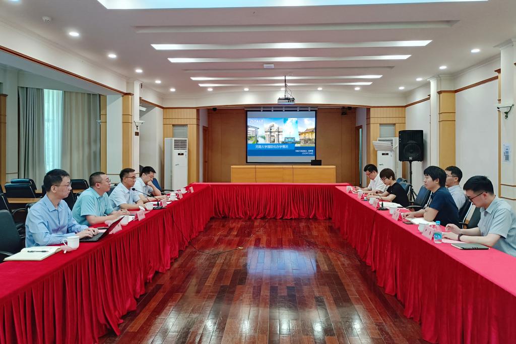 为学习借鉴省属高校国际化建设的成功经验,推动我校国际化办学高质量发展,7月4日,副校长傅声雷带领国际合作与交流处全体班子成员赴苏州大学,就国际化办学体制机制、国际化师资队伍建设、国际化人才培养、国际科技合作等方面问题进行调研交流。苏州大学党委常委、副校长李孝峰,以及国际合作交流处、人力资源处相关负责人出席调研座谈会。