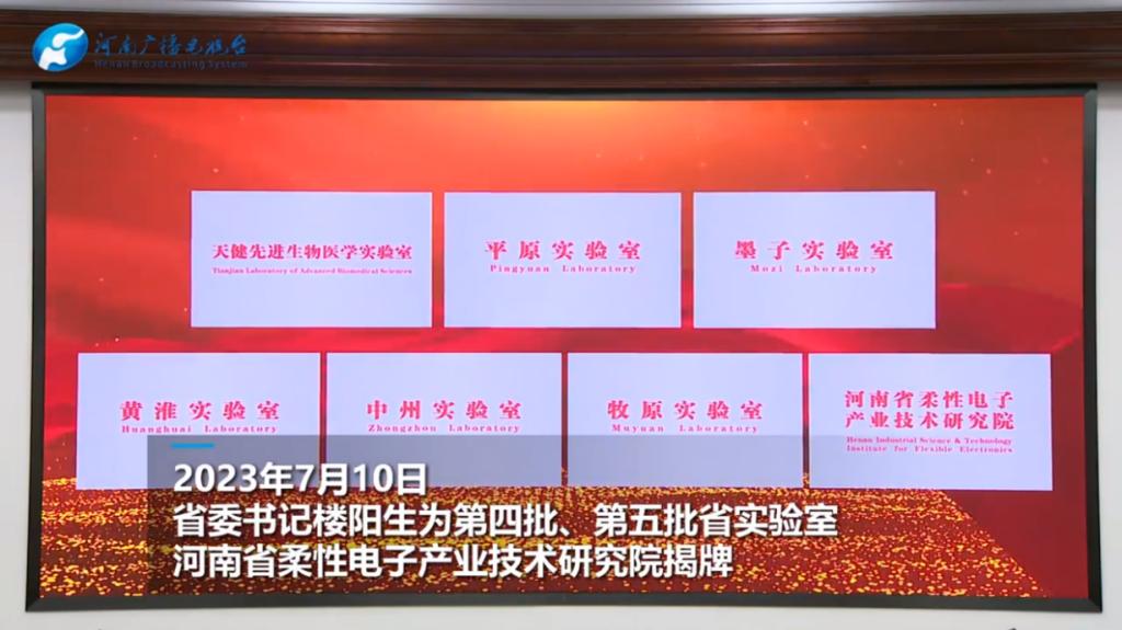 7月10日,第四批、第五批省实验室和河南省柔性电子产业技术研究院集中揭牌仪式在郑州举行,省委书记楼阳生出席并讲话,省长王凯出席。我校党委副书记、副校长谭贞参加揭牌仪式。本次集中揭牌的中州实验室和河南省柔性电子产业技术研究院均由我校牵头建设,截止目前,我校牵头建设的河南省实验室(研究院)已达3家,高水平科技创新平台建设取得显著成效。