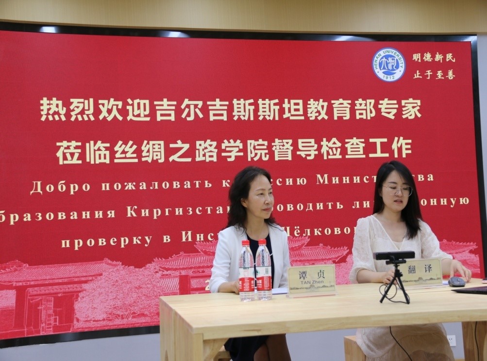 谭贞线上致欢迎辞。她简要介绍了我校的办学历史和办学特色以及学生培养、学科建设、校区建设、国家重点实验室及附属医院的基本情况。她表示,丝绸之路学院是中国教育部、河南省政府以及吉尔吉斯斯坦教育与科学部高度重视的重点教育教学项目,目前相关工作开展顺利,相信在督导组专家的指导下,丝绸之路学院的发展定会实现新的提升。
