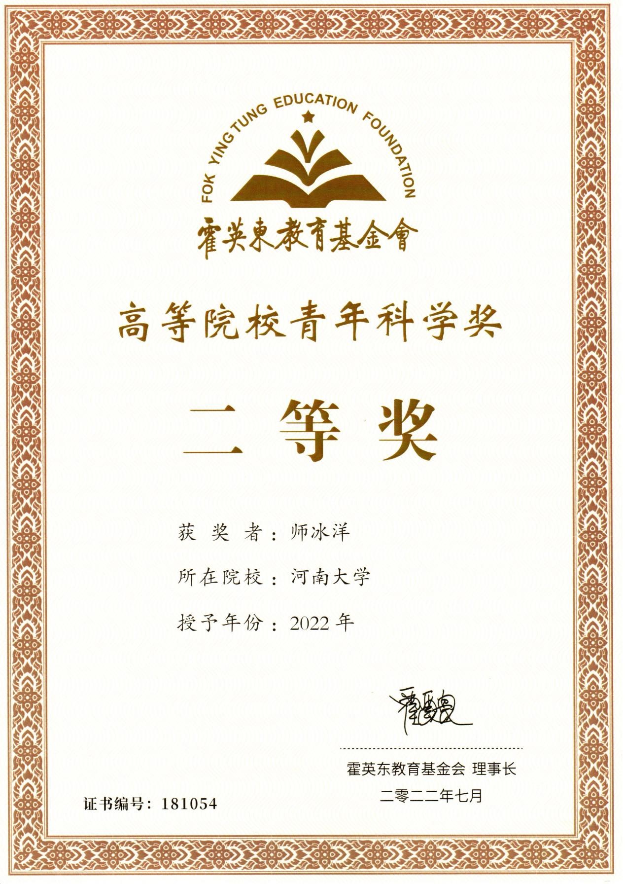 霍英东教育基金会是由全国政协副主席、香港著名实业家霍英东先生出资与教育部合作,于1986年成立。高等院校青年科学奖旨在奖励长期从事一线科学研究工作,坚持立德树人根本任务,对国家经济发展、社会进步和科技创新有突出成就,并取得重要成果的青年教师。青年科学奖一等奖每届不超过5名,二等奖每届不超过75名。