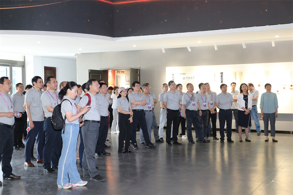 7月15日上午,在谭贞、冯淑霞等人的陪同下,华中师范大学副校长任友洲、党委副书记陈迪明以及80余名中层正职干部参观了我校明伦校区近代建筑群,并走进文物馆、校史馆、大礼堂等场地,深入考察我校办学历史和“双一流”建设情况。在考察调研期间,参访团成员对我校深厚的文化底蕴、古朴典雅的校园环境、自强不息的办学精神表示由衷赞赏。
