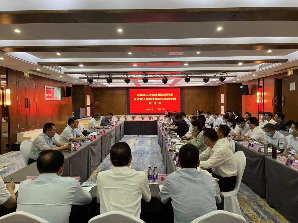7月14日,我校与河南省人大制度理论研究会联合举办的全过程人民民主理论与实践专题研讨会在开封维也纳国际酒店举行。省人大常委会副秘书长、办公厅主任、省人大制度理论研究会副会长吴文毅出席会议并讲话,省人大常委会办公厅研究室主任、省人大制度理论研究会副会长黄登峰主持会议,我校副校长苗雨晨出席会议。来自省人大常委会机关及人大制度理论研究会、郑州市人大、开封市人大、安阳市人大、鹤壁市人大、新乡市人大、焦作市人大、濮阳市人大、商丘市人大、天津师范大学、河南大学、郑州大学、河南省社会科学院、河南省委党校的领导和专家参加会议。