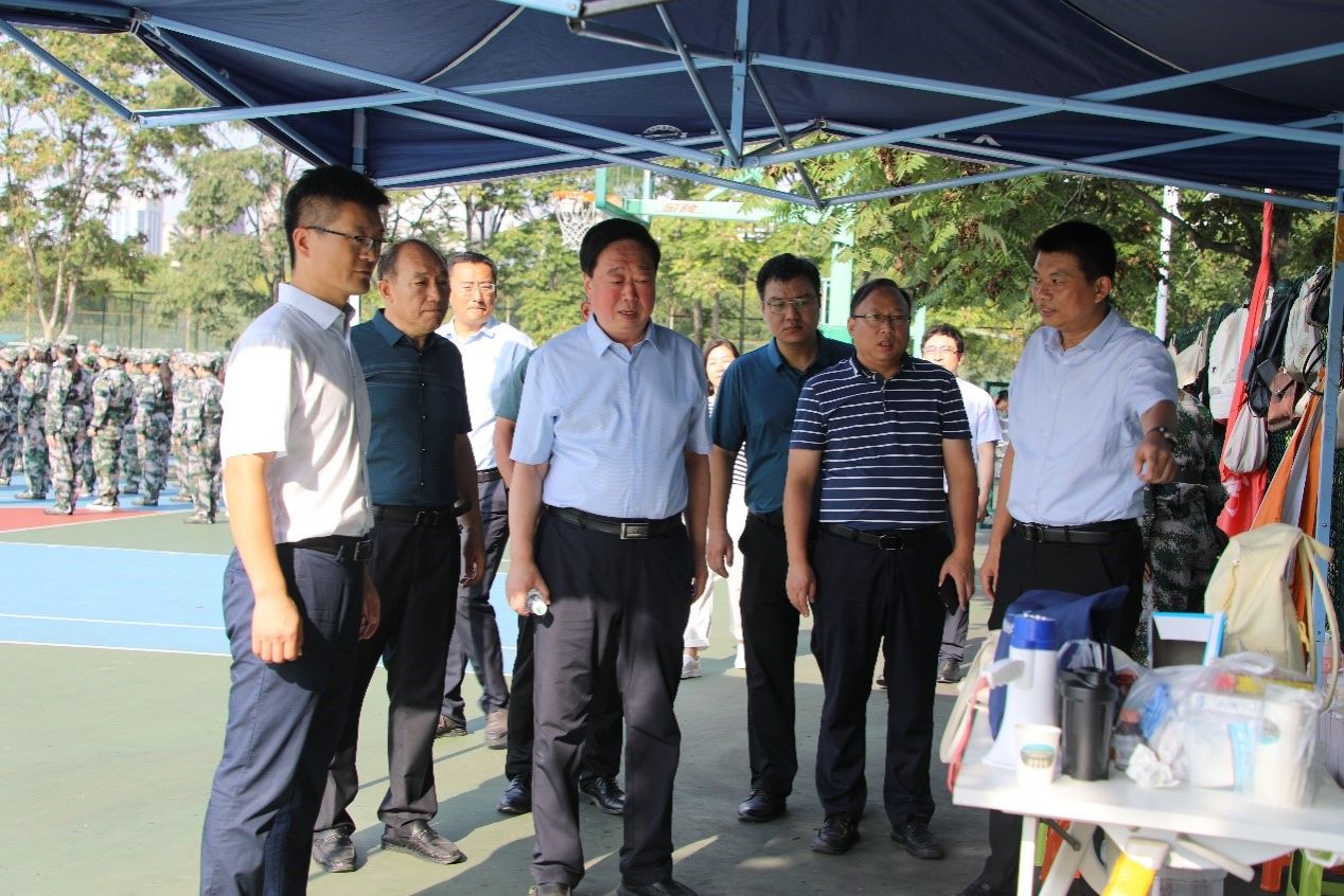 在2021级学生军训如火如荼开展之际,9月1日上午,校党委常委、副校长许绍康带领学校相关职能部门负责人到训练场检查训练工作,看望军训服务点和校医院医疗服务点的工作人员。