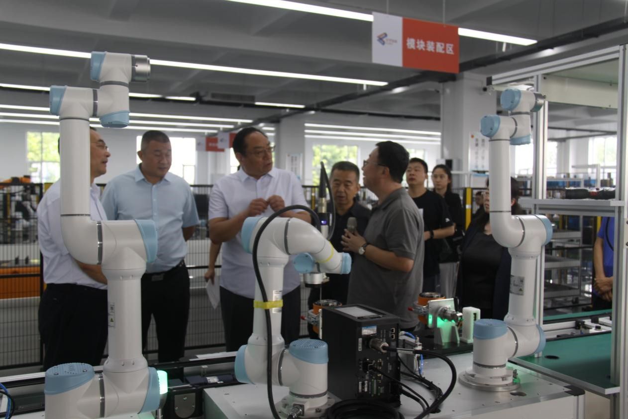 9月4日上午在遨博协作机器人产业基地,孙君健一行参观了康复理疗机器人、咖啡机器人等产品和机器人生产车间,了解产品的生产链条、技术革新、应用场景,并结合校企间相关科研项目合作进行深入交流。下午,在山东齐都药业有限公司,孙君健一行先后参观了药品生产车间、物流中心和厂史馆,并对企业科技战略、产学研特色合作模式及成效表示了肯定。