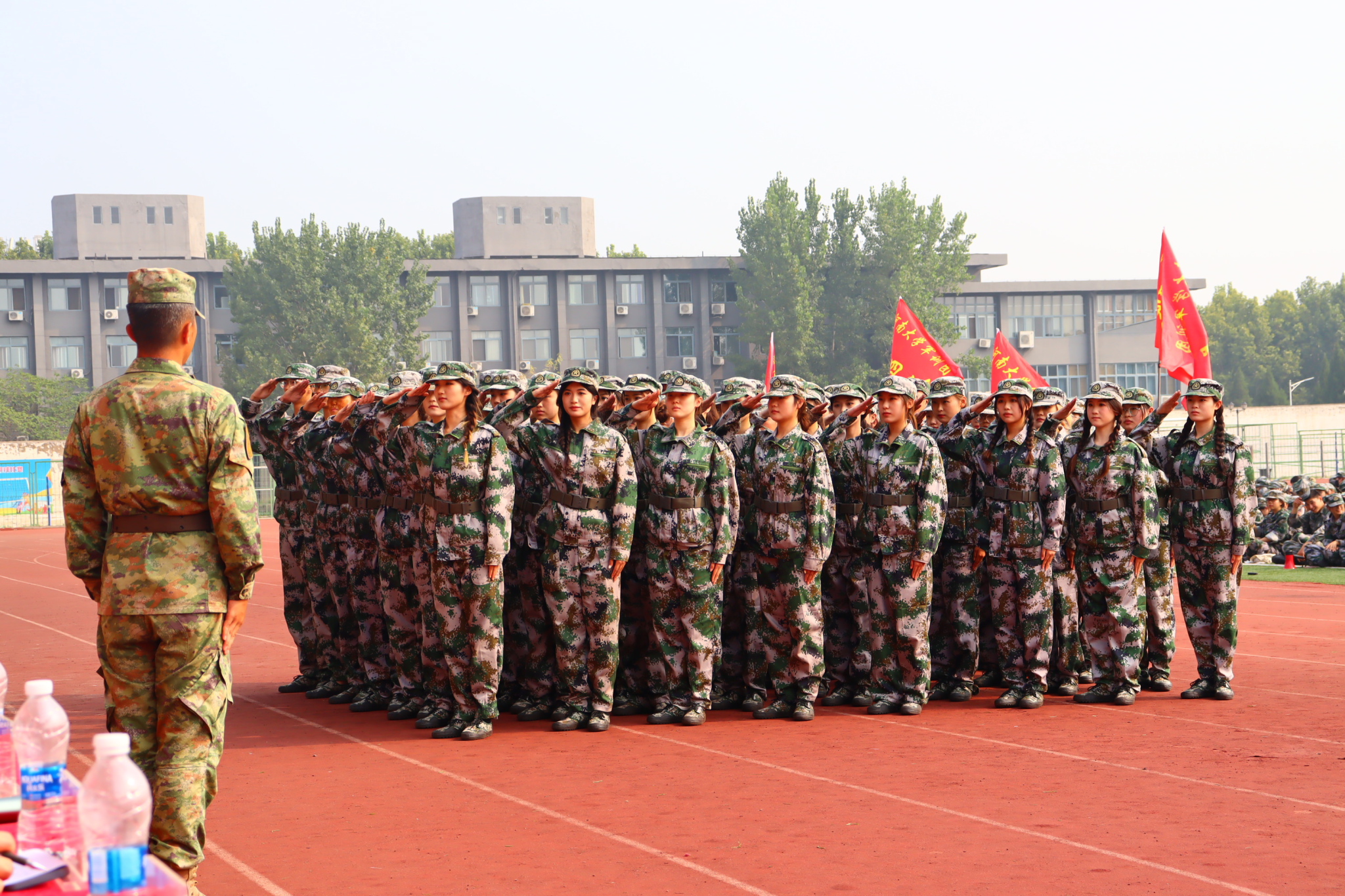 本次军训为补训,经学校统一安排和部署,军训日期安排至8月,持续时间为8天。同时,为更好发挥军训激发爱国主义热情、培养艰苦奋斗和集体主义精神的作用,本次军训教官特邀解放军32026部队的47名军官参与指导和训练,部分军训教官则由我校退役复学大学生和部分国旗护卫队的队员组成。虽然训练时间短暂,但在带训教官们的精心组织与科学施训下,在辅导员们的悉心组织下,参训学生们热情饱满,不畏天气炎热,克服种种困难,积极投入训练,取得了较好的训练成果。