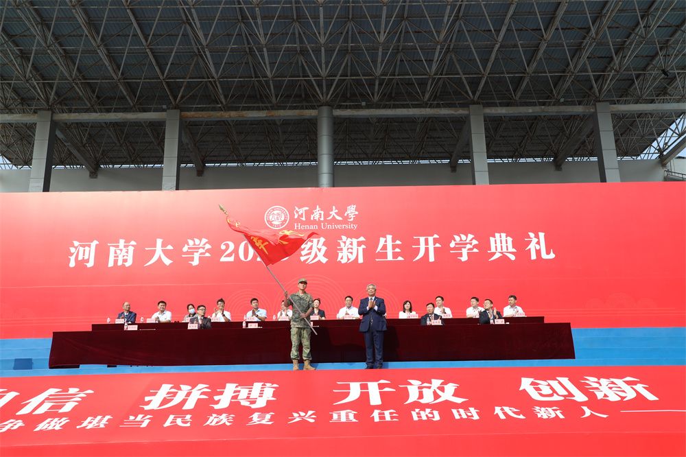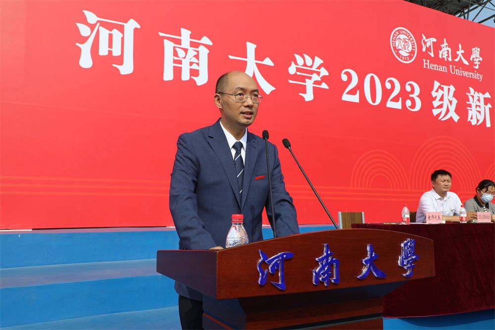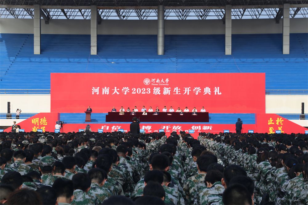 校长张锁江院士以“逐梦前行 不负青春”为题,为新一代河大学子上了精彩的“开学第一课”。他首先向2023级全体新同学致以最热烈的欢迎,指出同学们来到河大,深厚的文化底蕴、优美的校园环境让他们品味到悠然岁月飘来的书香,造诣深厚的前辈学人、朝气蓬勃的优秀学子让他们在润物无声中精进笃行,持续完善的培养服务体系、丰富多彩的社团实践活动让他们在“多重宇宙”中憧憬未来。他表示,大学阶段是一个人一生最重要的转折,同学们要迎接大学阶段全新的挑战,并向大家分享了三点感悟。一是要志存高远,将青春理想与服务人民、奉献祖国紧密结合,以责任和使命引领未来发展。要树立远大理想,确立长远目标,同时要将远大理想与人生规划和具体实践结合起来,在不断的学习、实践和探索中实现理想目标。二是要自信拼搏,将青春理想与精学博学、增长本领紧密结合,以勤奋和能力奠定人生基石。要学好基础知识、提升综合素质、学会独立思考,自信、拼搏、执着,以扎实的基本功、强大的综合素质、清醒坚定的内心奠定事业发展根基。三是要砥砺身心,将青春理想与追求卓越、崇德向善紧密结合,以品格和健康支撑全面发展。大学期间不仅要学会如何做学问,更要学会如何做人;同时在校期间培养至少一项体育爱好,使其成为一生的习惯。最后,张锁江表示,今天的开学典礼也是军训动员大会,希望同学们听从指挥、严守纪律、刻苦训练,通过军训增强国防观念和集体主义精神,练就健康体魄,磨练意志品格;并祝福同学们带着梦想、带着憧憬,逐梦前行、不负青春!