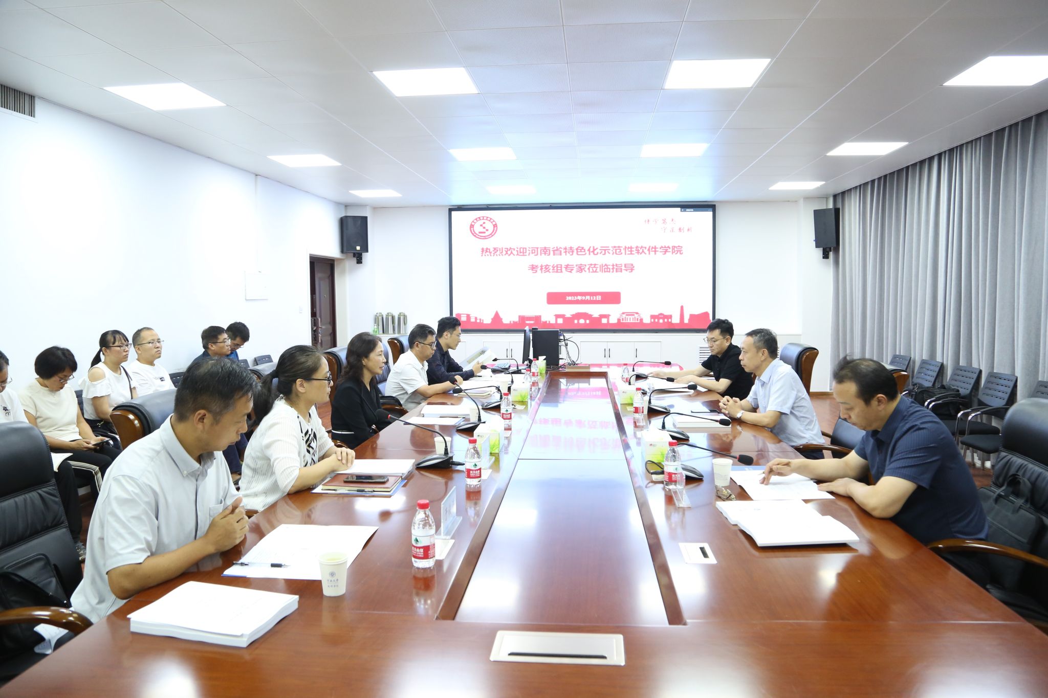 近日,河南省教育厅启动首批20所省级特色化示范性软件学院建设考核工作。9月12日,考核组组长、许昌学院副院长杜根远、河南农业大学软件学院院长陈振、河南师范大学软件学院院长王川一行三人对我校特色化示范性软件学院建设情况进行了实地考察。校党委副书记、副校长谭贞,教务处副处长朱显峰、软件学院领导班子成员及师生代表参加考核会议,会议由软件学院党委书记常继科主持。