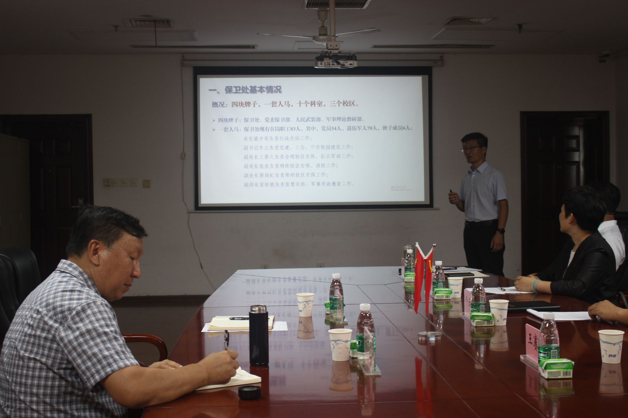 9月15日上午,副校长苗雨晨到保卫处调研指导校园安全工作。调研分为实地考察和召开座谈会两部分。保卫处全体处领导、各科室主要负责人参加了座谈会,会议由后勤保障部党委副书记牛云杰主持。