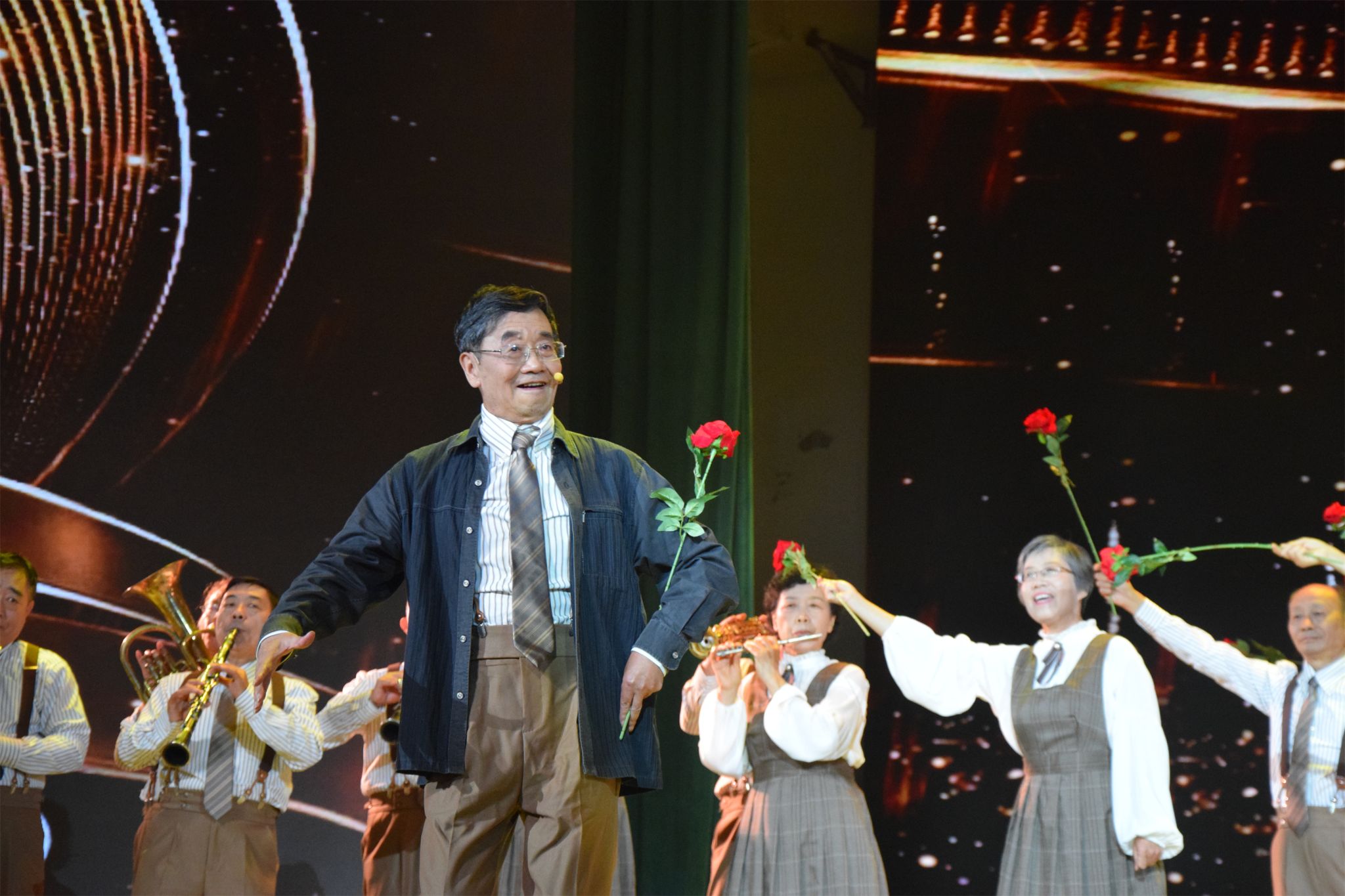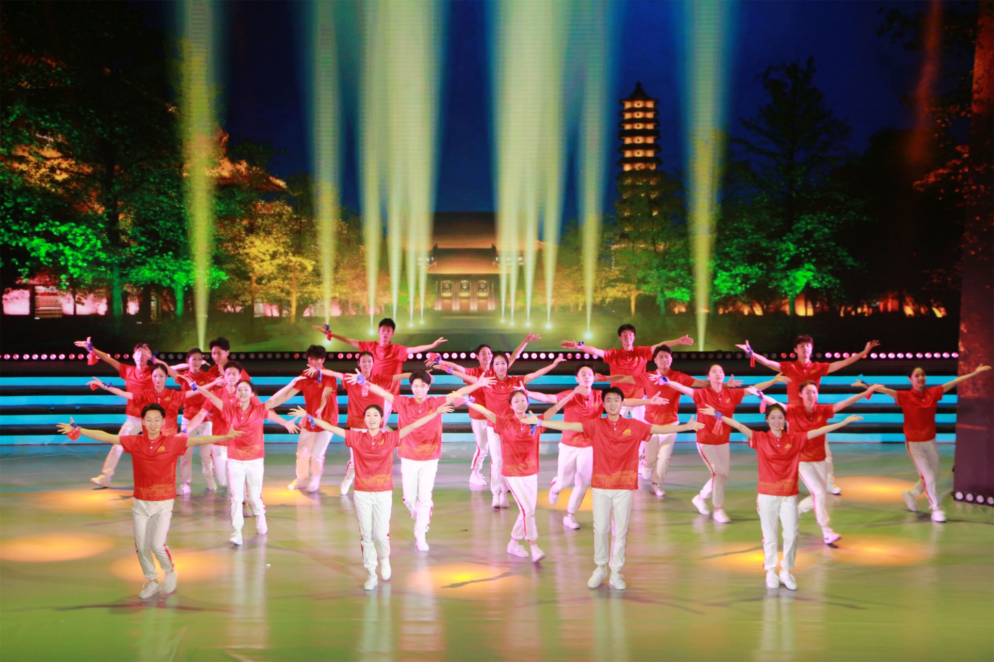 在欢快热烈、青春洋溢的歌舞表演《我们来了》中,汇演拉开了序幕,明快的旋律迅速点燃全场观众的热情;随后的节目各具风格,精彩纷呈。武术表演《黉宫圣殿》展示了校内建筑古今交融、中西合璧的特色,传递出自信、拼搏、开放、创新的精神内涵;舞蹈《大学之道》生动地诠释了“明德新民,止于至善”的精神底色,历久弥新,而河大人追求至善的步伐也将永不停息;一群平均年龄70岁的老教师、老教授们与青年学子共同演绎的歌舞《那时芳华》,传达出对河大炽热澄澈的爱;歌曲《铁塔风铃》唤起在场所有“铁塔牌”学子的专属记忆,回顾了最难忘的校园时光;体育秀《陌上花开》以一场奇幻之旅带大家领略了生物学科三十年来的风雨历程;情景剧《青春有我》讲述了一段段河大学子经历的青春故事,激励每一位河大人踔厉奋发,奔涌向前;歌曲《为您歌唱》唱出了大家心中最想对母校说的话,恩情绵绵,感激不尽;舞蹈《继往开来》从空间上的跨越展现出河南大学蓬勃发展的接续;朗诵《山河交响》以山河一样的格局和气魄,传达出对河大最高的礼赞和最美的祝福。