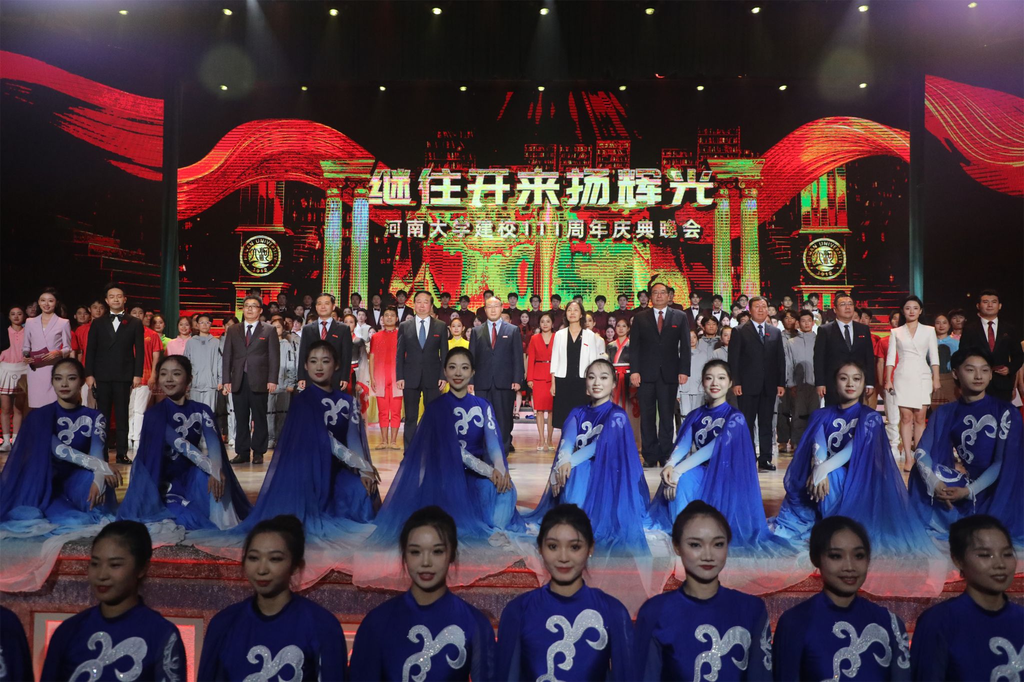 百年薪火传河大,弦歌不辍绽芳华。9月25日晚,河南大学建校111周年教学成果展示汇演在明伦校区大礼堂隆重举行。校领导、各院系师生、校友以及各界嘉宾到场观看。同时,展示汇演同步进行现场直播,海内外河大人共度这一欢乐而又温情的时刻。