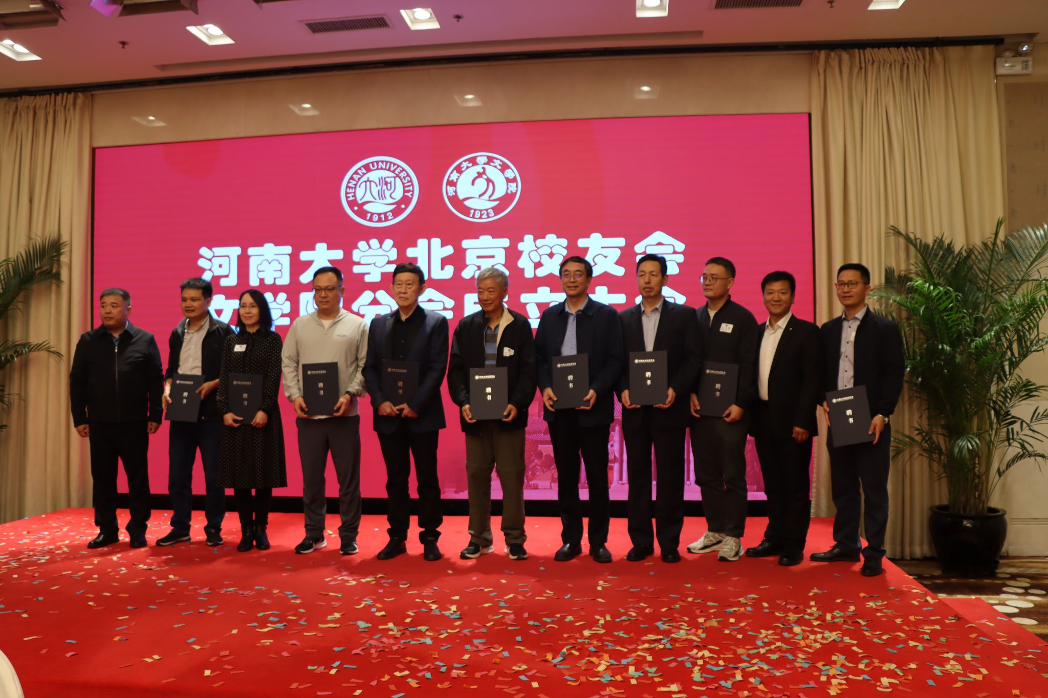 在全场热烈响亮的掌声中,会议表决通过了河南大学北京校友会文学院分会章程与河南大学北京校友会文学院分会理事会名单。刘会军、刘百陆为文学院校友会理事会成员颁发聘书,河南大学校友总会、浙江校友会、海南校友会、天津校友会、山西校友会、上海校友会、江苏校友会、郑州校友会等纷纷现场或视频祝贺,并赠送锦旗、书法作品等贺礼。