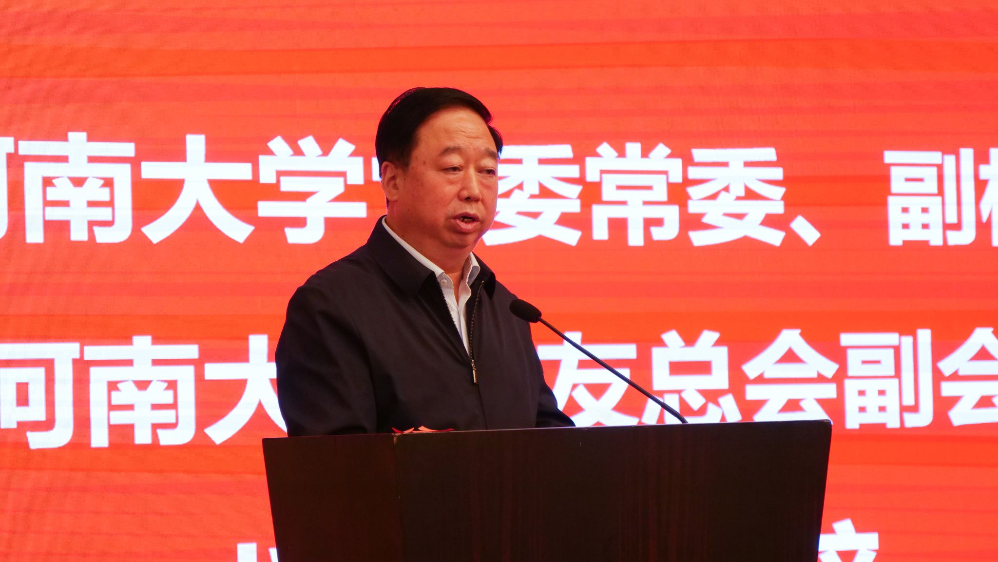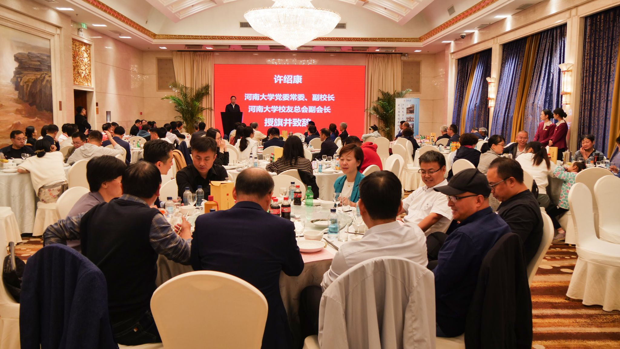 许绍康为文学院北京校友分会授旗,将全场气氛推向高潮。他代表学校与校友总会对各届校友们的到来表示诚挚欢迎,向关心和支持文学院发展的各单位和朋友表示感谢。他深情回顾了河南大学建校111年以来波澜壮阔、矢志奋进、开拓创新的发展历程。作为学校发展的见证者、参与者,许绍康指出,进入国家“双一流”建设名单后,学校进入了黄金发展阶段,得到了河南省委省政府的高度重视和充分的政策与资金支持。文学院是河南大学创办历史悠久、学科特色鲜明的学院,学校鼓励文学院一定要利用好现有的资源与平台,守护好开封铁塔下的百年文脉,在新时代取得新发展,续写百年文院崭新华章。