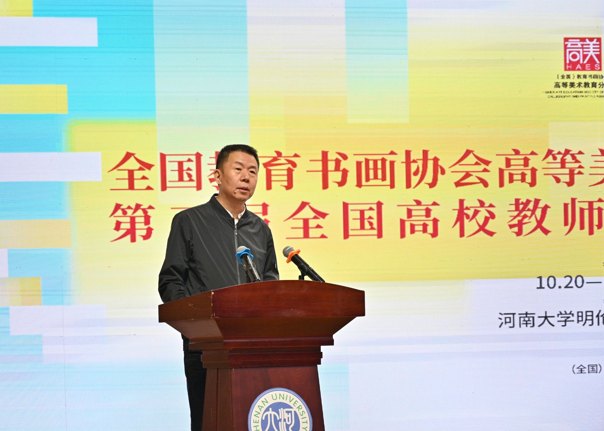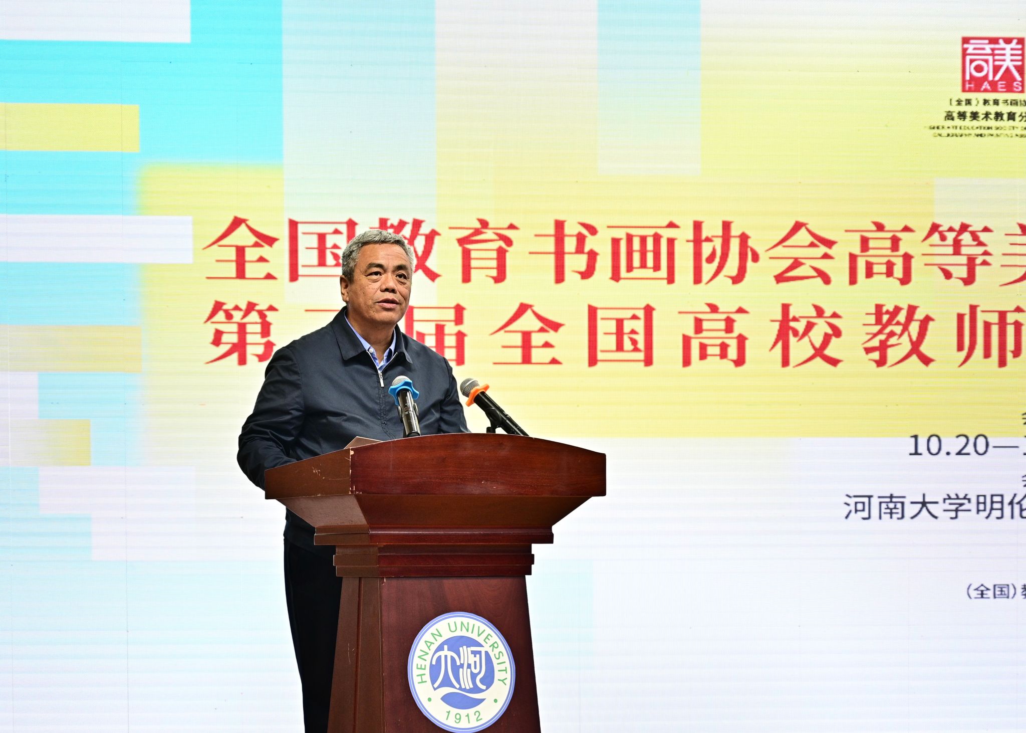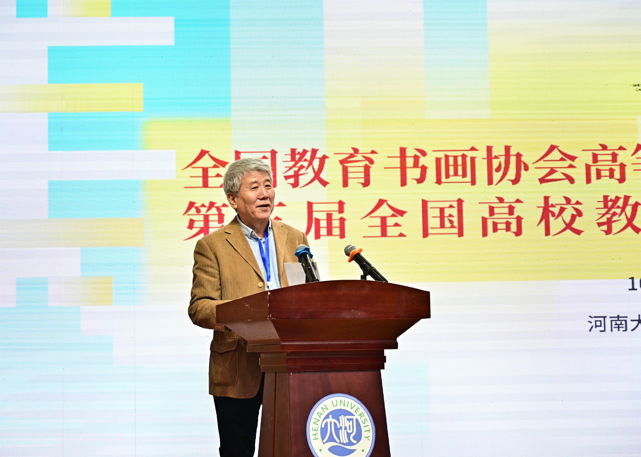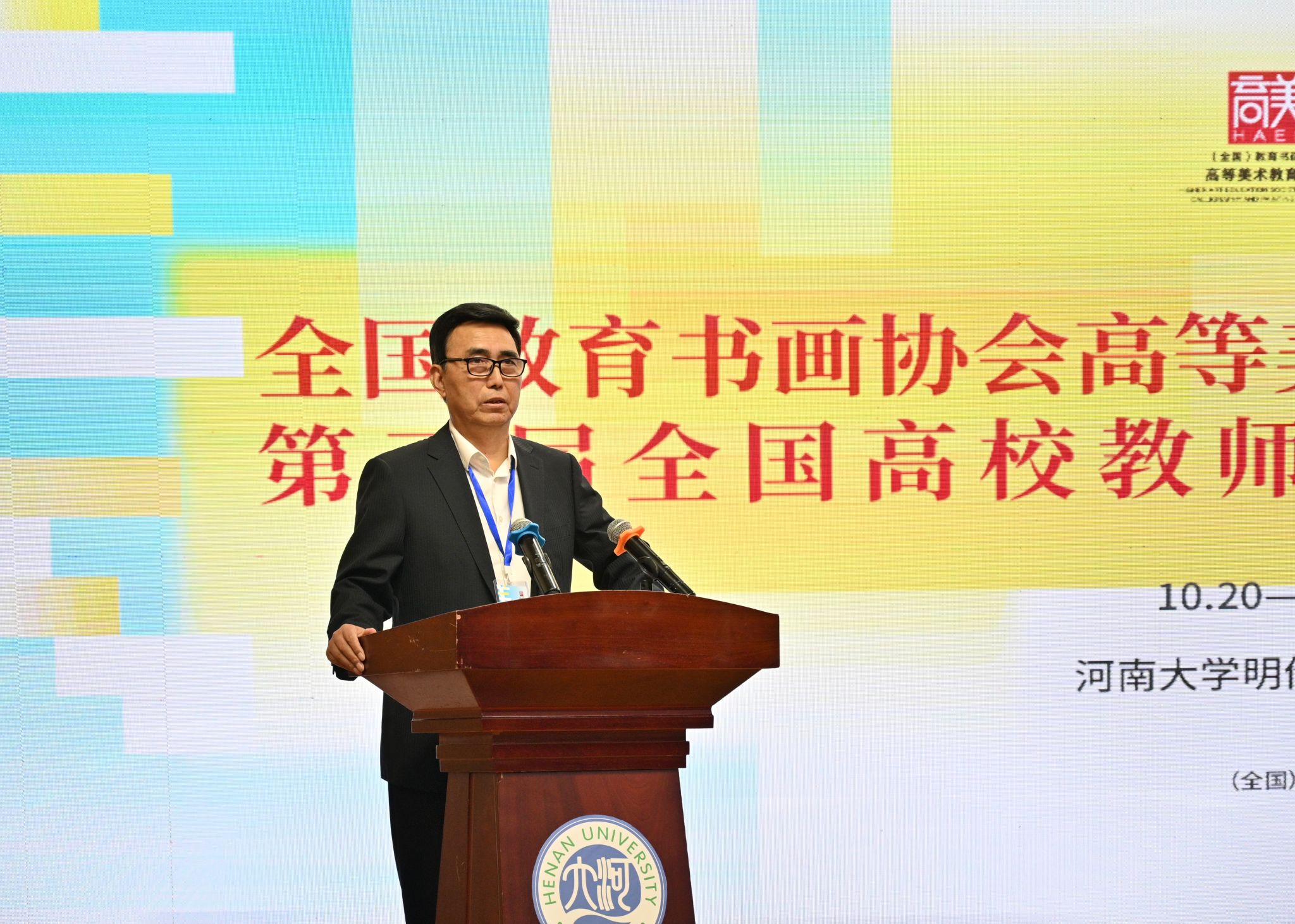 特邀嘉宾代表黄宗贤对学术年会的召开表示祝贺。他认为,(全国)教育书画协会是国内探讨、研究高等美术教育的重要平台和纽带,一直以来其多元的活动形式促进了高校美育在理论与实践方面的长足发展。他指出,高校美育与社会美育需紧密联动,河南大学百余年的历史传承与学术养分孕育了许多国家栋梁之材,相信此次年会的举办能够从中原地区辐射全国,与众多高校协同推进美育发展,进而为社会美育作出贡献。